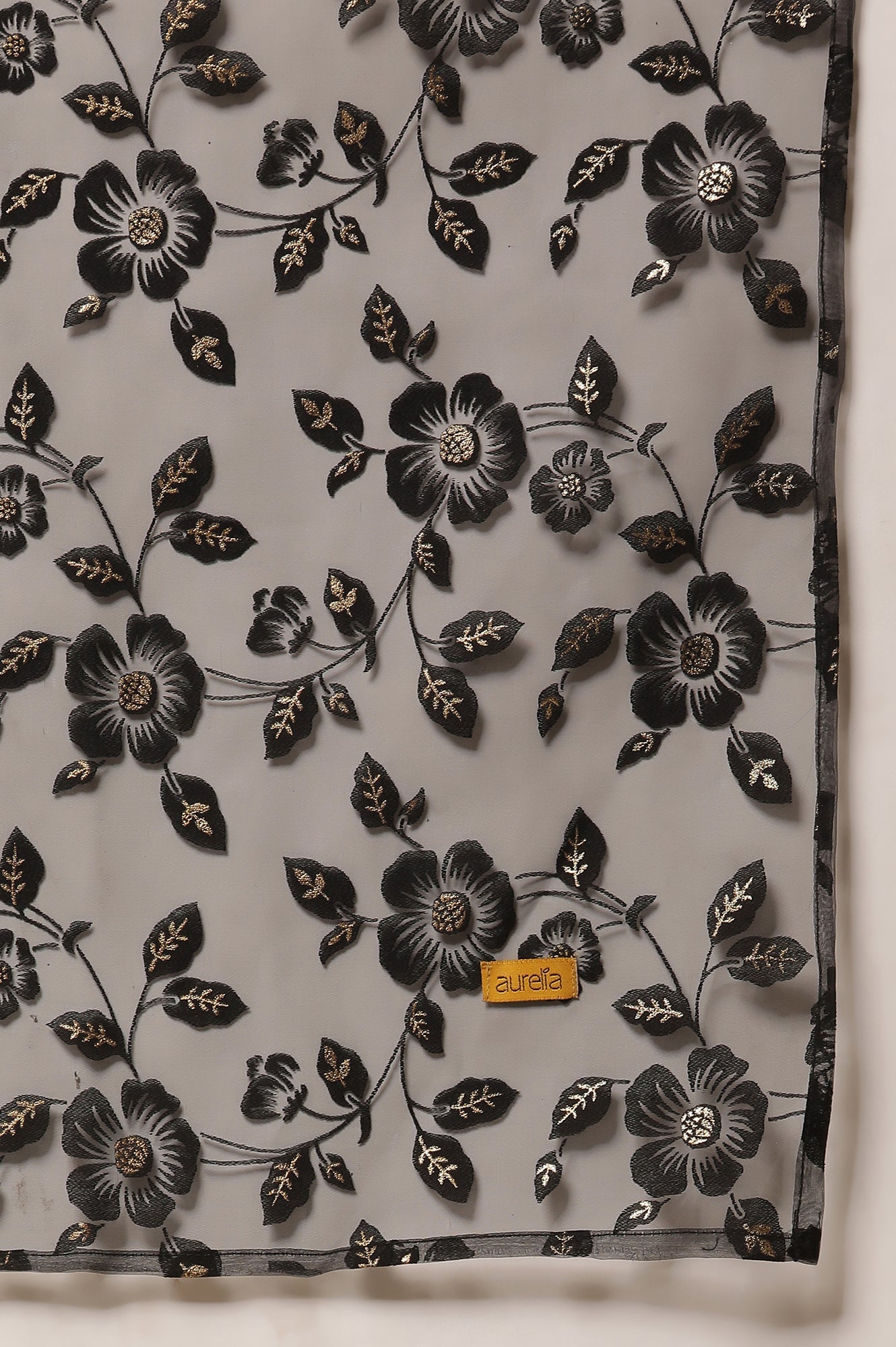 Black Shantung Embroidered Straight Kurta, Pants with Dupatta Set