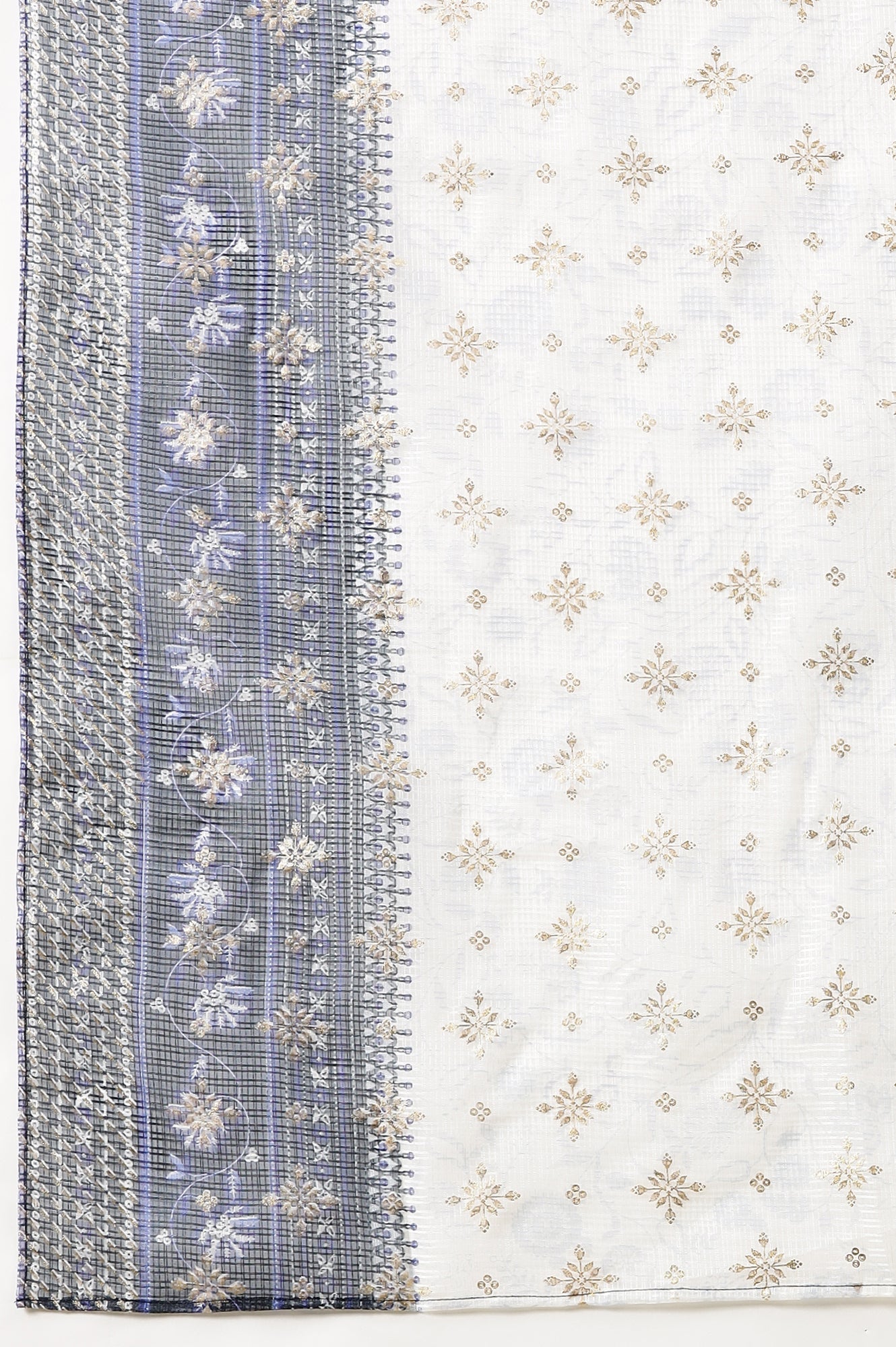Blue and White Floral Printed Kota Doria Light-Weight Sheet Dupatta