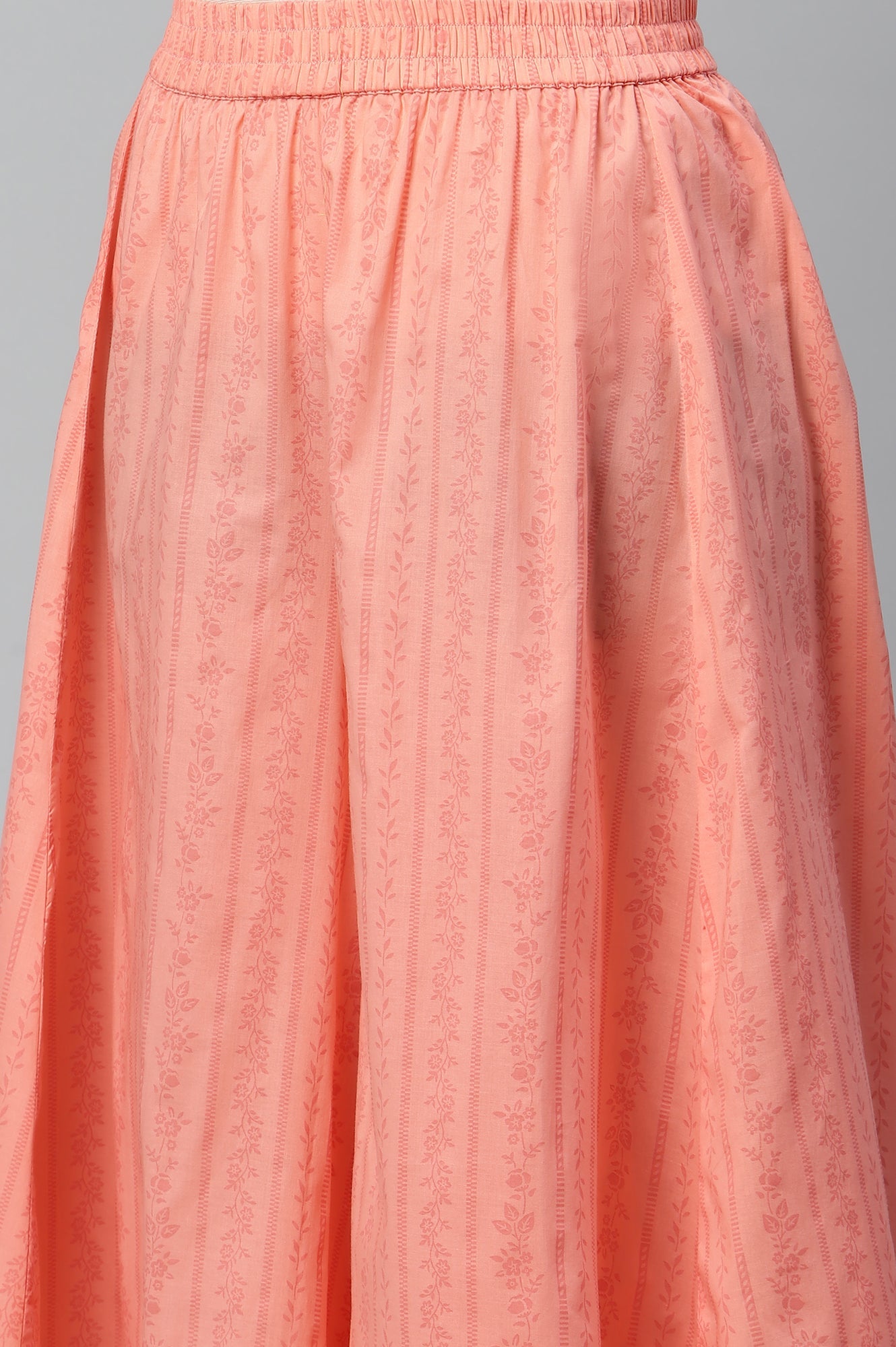 This Three-Piece Set Includes A Body-Skimming Straight Kurta, A Vibrant Peach Colored Flared Culotte And A Complimenting Printed Dupatta. Crafted In Cambric, It Features Floral Motifs In Shades Of Blues And A Few Accent Colors. Club This Look With Your Favourite Accessories For A Beautifully Balanced Look.