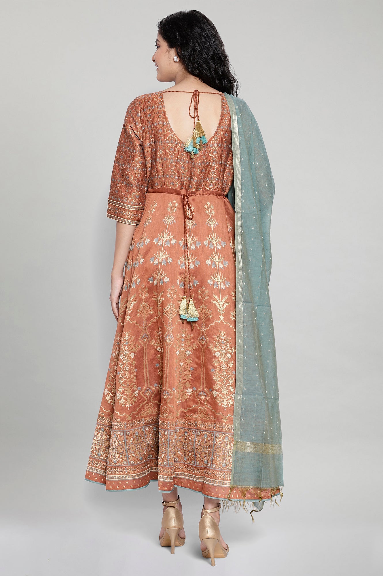 Brown Printed Ethnic Dress-Dupatta Set