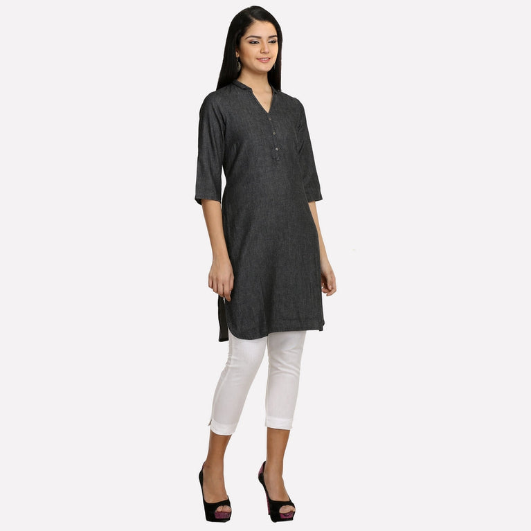 Add a touch of timeless grace to your wardrobe with this beautiful straight kurta for women crafted in natural cambric fabric. Featuring an all-over floral print in subtle earthy tones on a soothing pastel blue base, this kurta is a perfect blend of comfort and style. The soft texture and lightweight weave of cotton make it ideal for casual outings, summer get-togethers, and daytime festivities. Thoughtfully designed with 3/4th sleeves, a v neckline with embroidered detailing, this kurta brings effortless charm to your everyday ethnic collection.