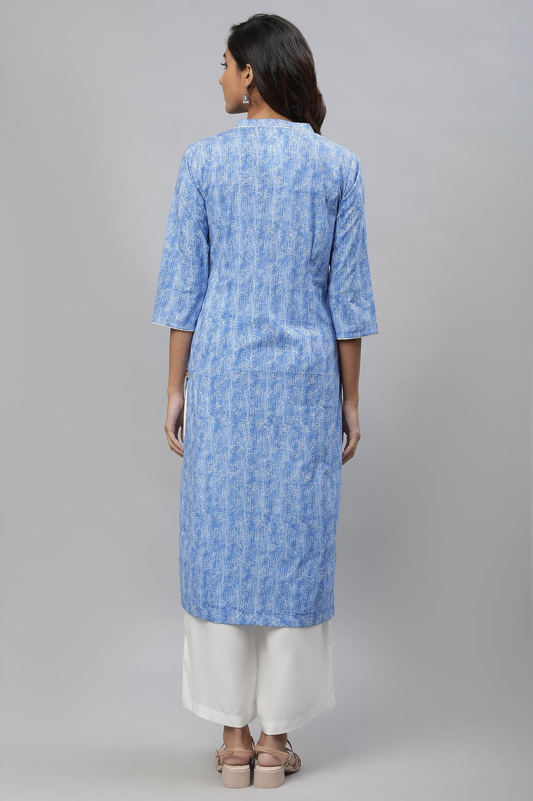 Blue Botanical Printed Pure Cotton Straight Kurta