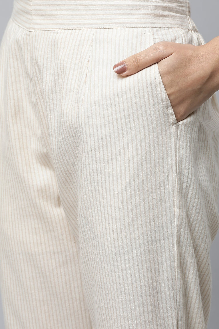 Elegant yet stylish! This beige kurta set is a must have for summer wardrobe. The set inlcudes beige printed kurta and paired with trouser pants and yarn-dyed cotton dupatta.