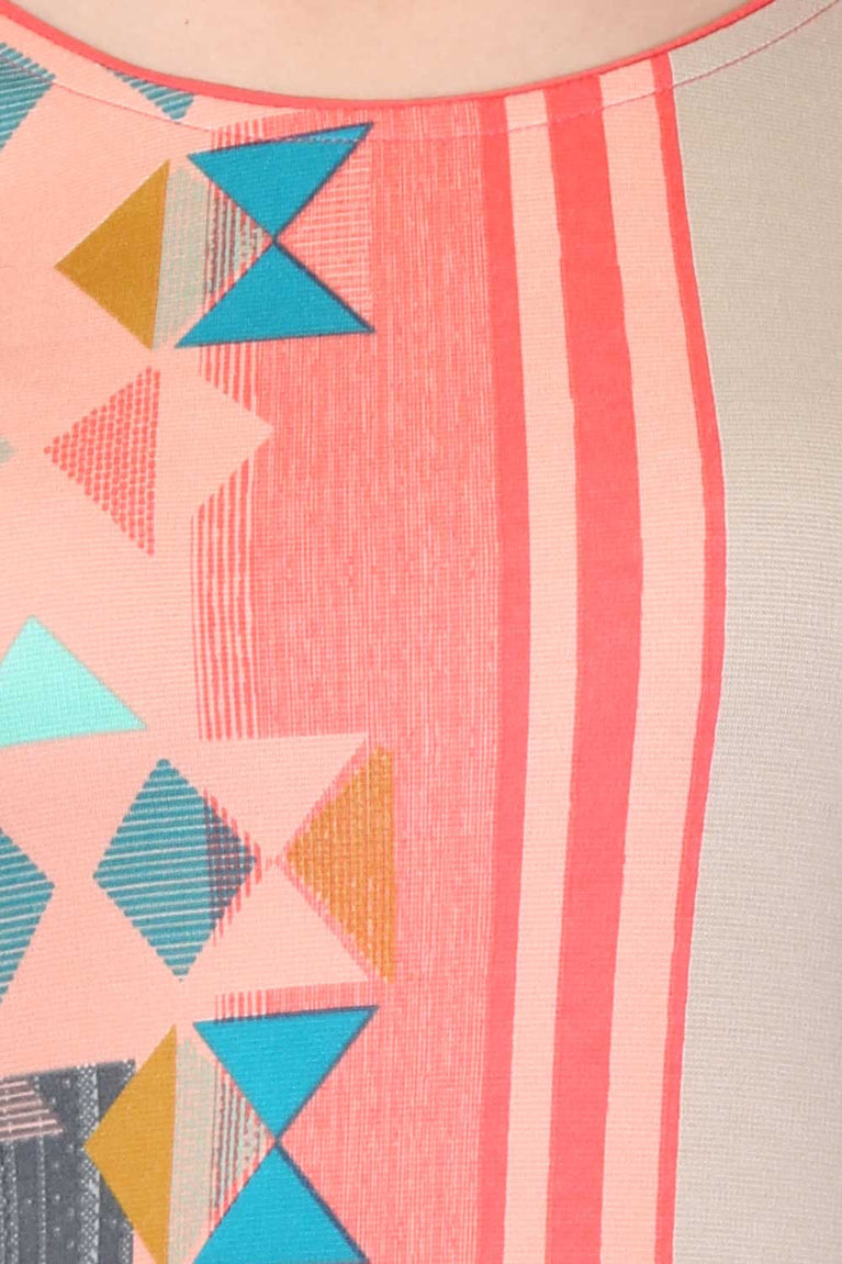 Coral Red & Black Colorblocked Printed kurta