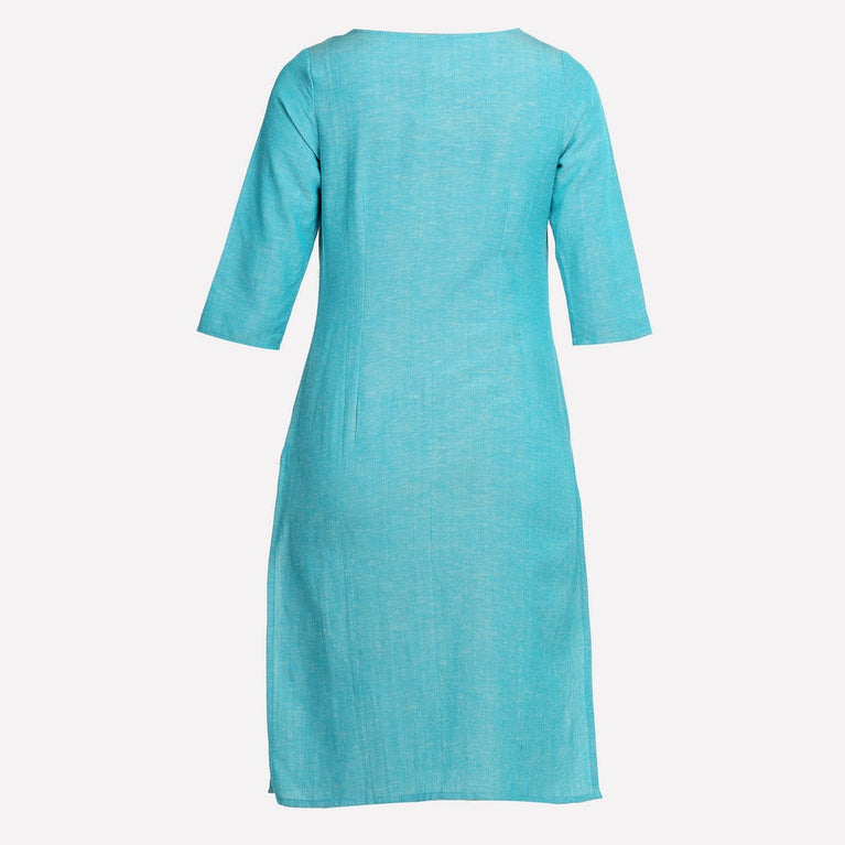 Blue Yarn Dyed Straight Pure Cotton Kurta