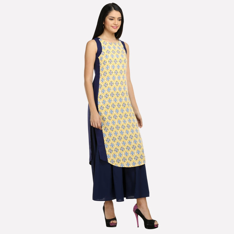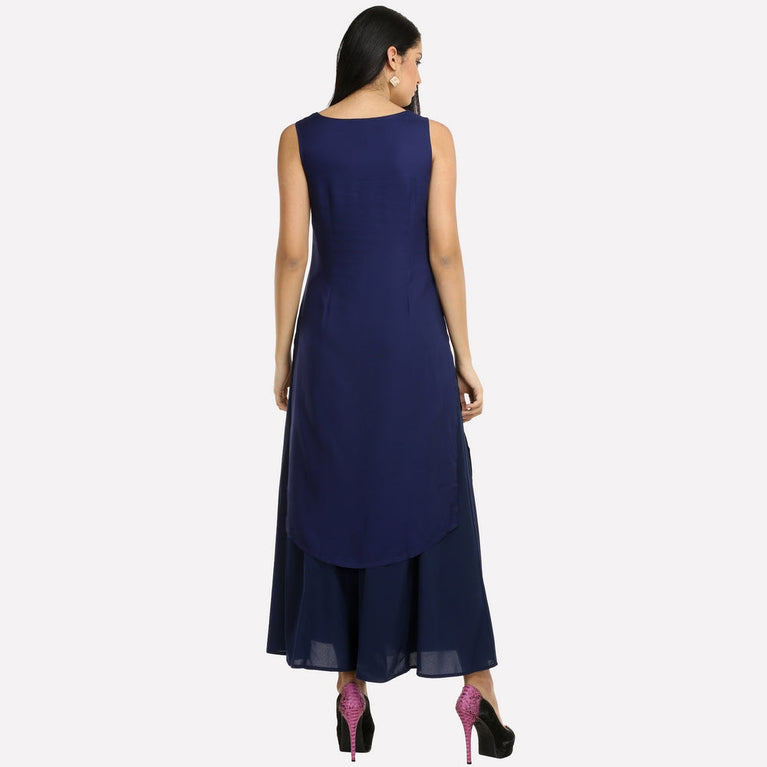 Blue Colorblocked Sleeveless kurta
