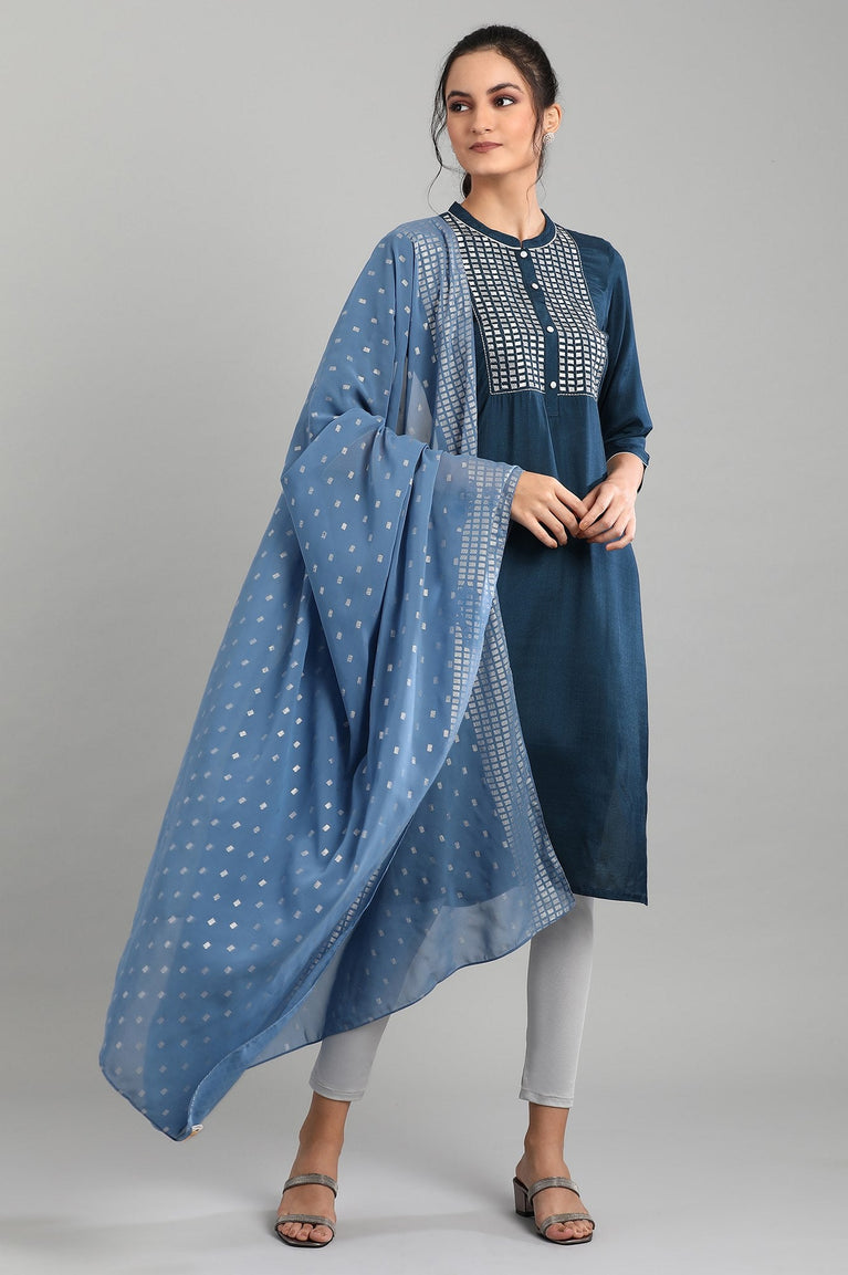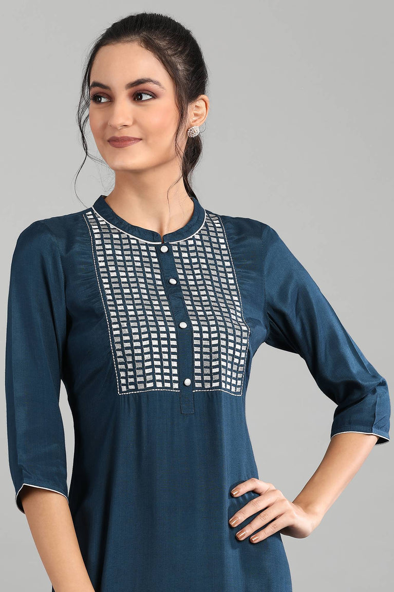 Blue Mandarin Neck 3/4 Sleeve kurta
