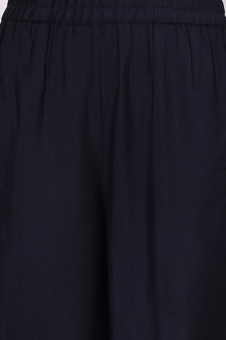Celebrate tradition with this blue jacquard kurta set featuring intricate ethnic motifs and delicate hand work. The straight kurta is paired with flowing palazzos and a complementary dupatta, blending textural richness with cultural charm. Ideal for festive evenings or special events, the hand embellishments and woven patterns elevate the look beyond the everyday.