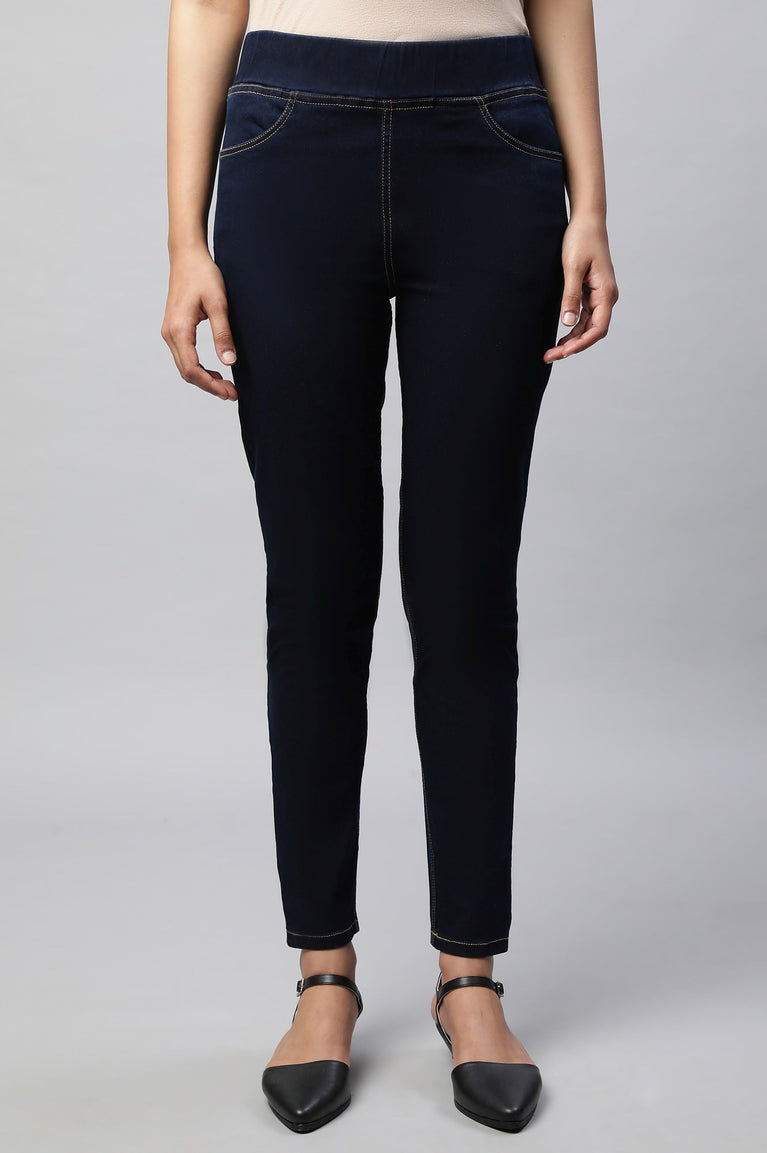 Blue Pure Cotton Flared Kurti and Jegging Set