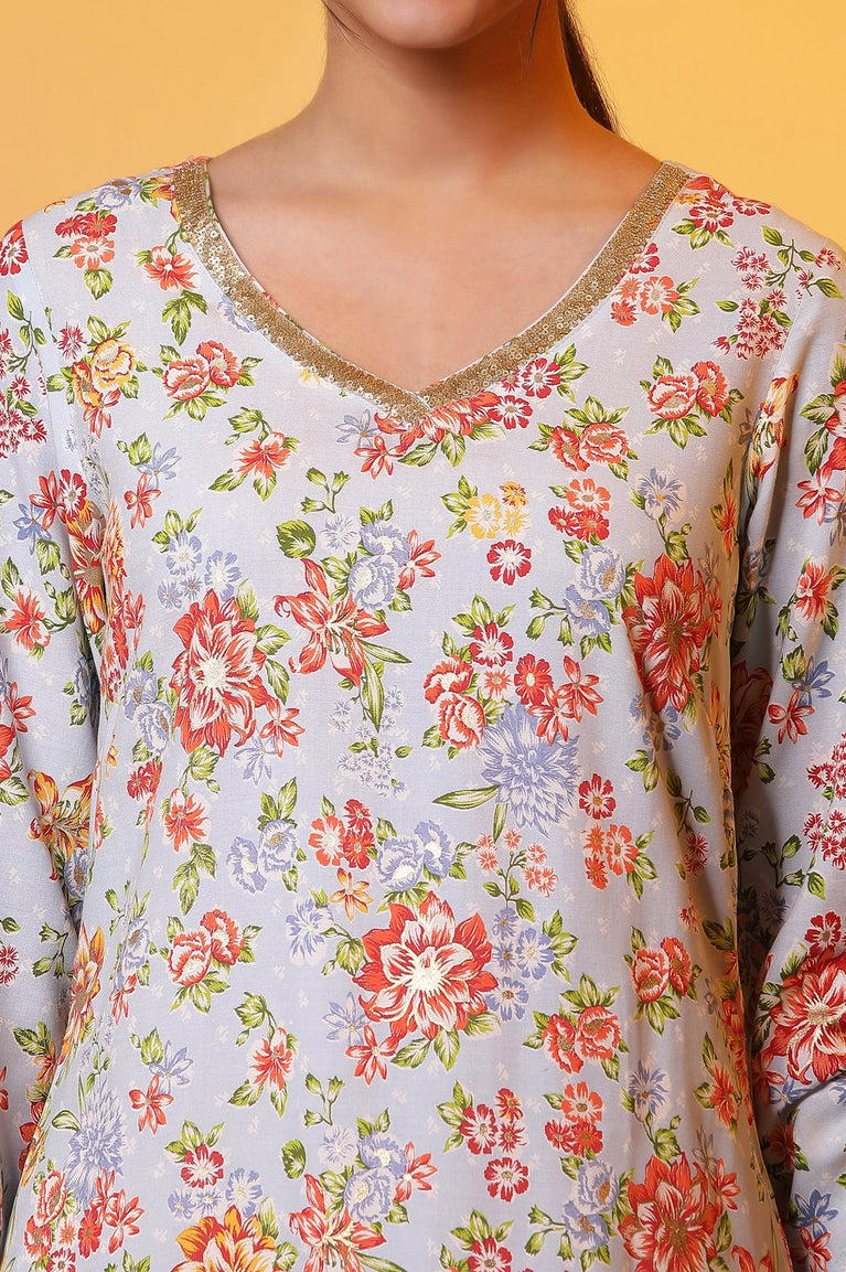 Blue Floral Printed Straight Kurta and Palazzo Set