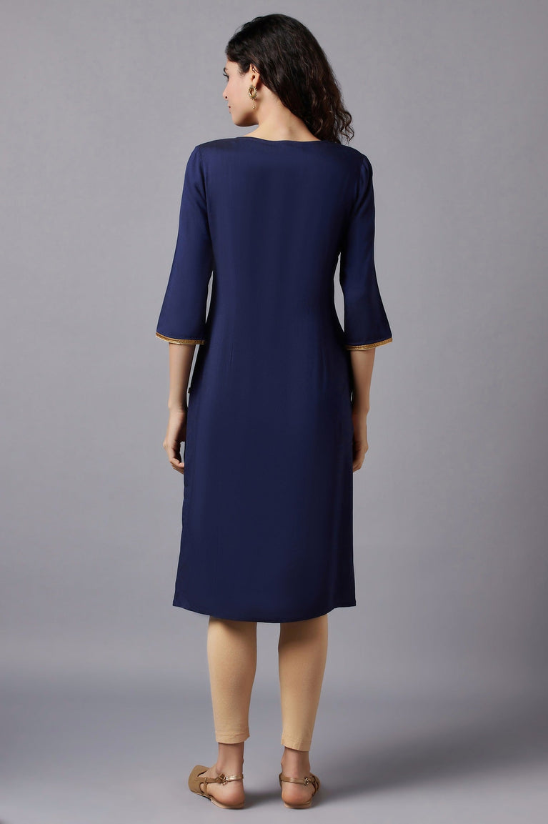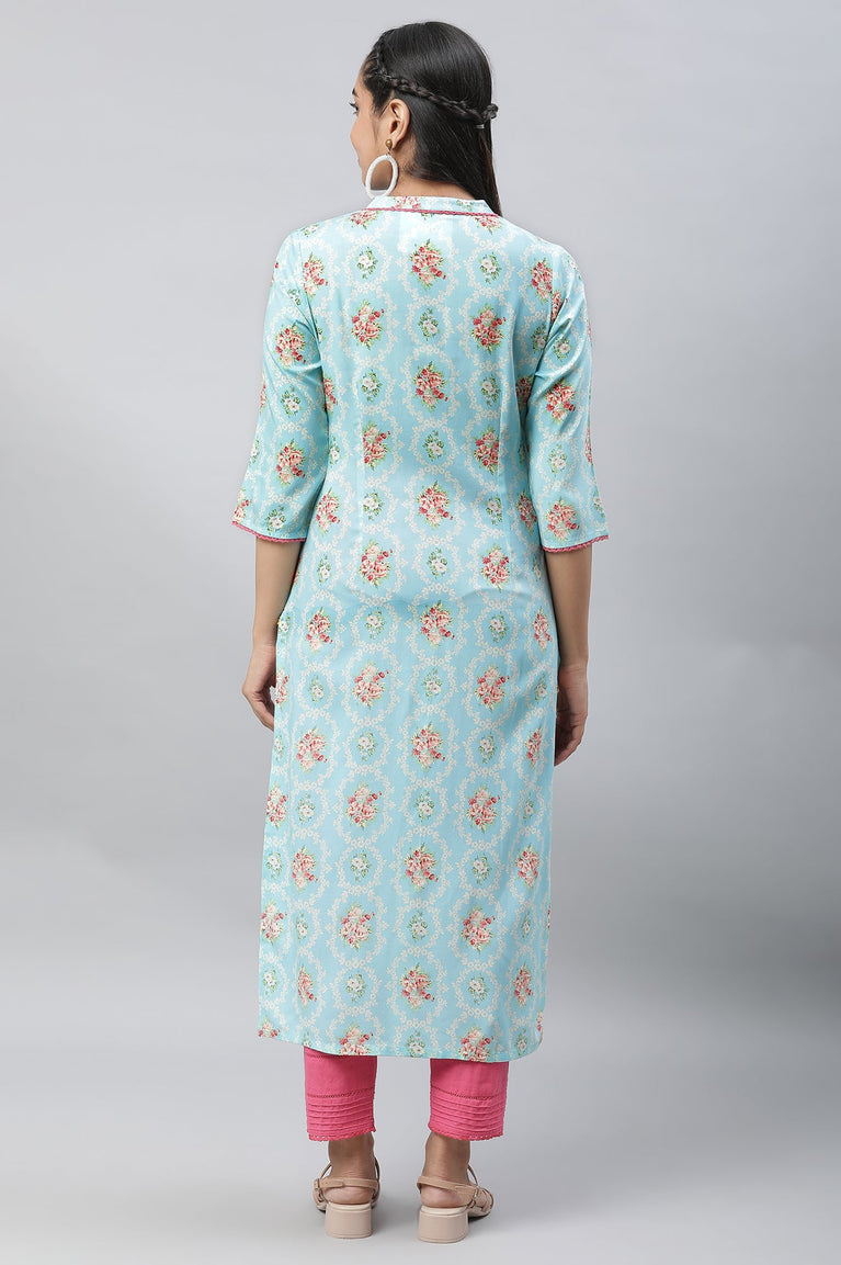 Blue Round Neck Printed kurta