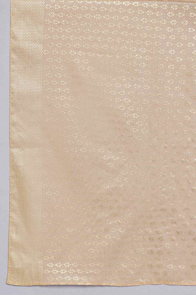 Beige Yarn Dyed Panelled Kurta, Churidar and Dupatta Set