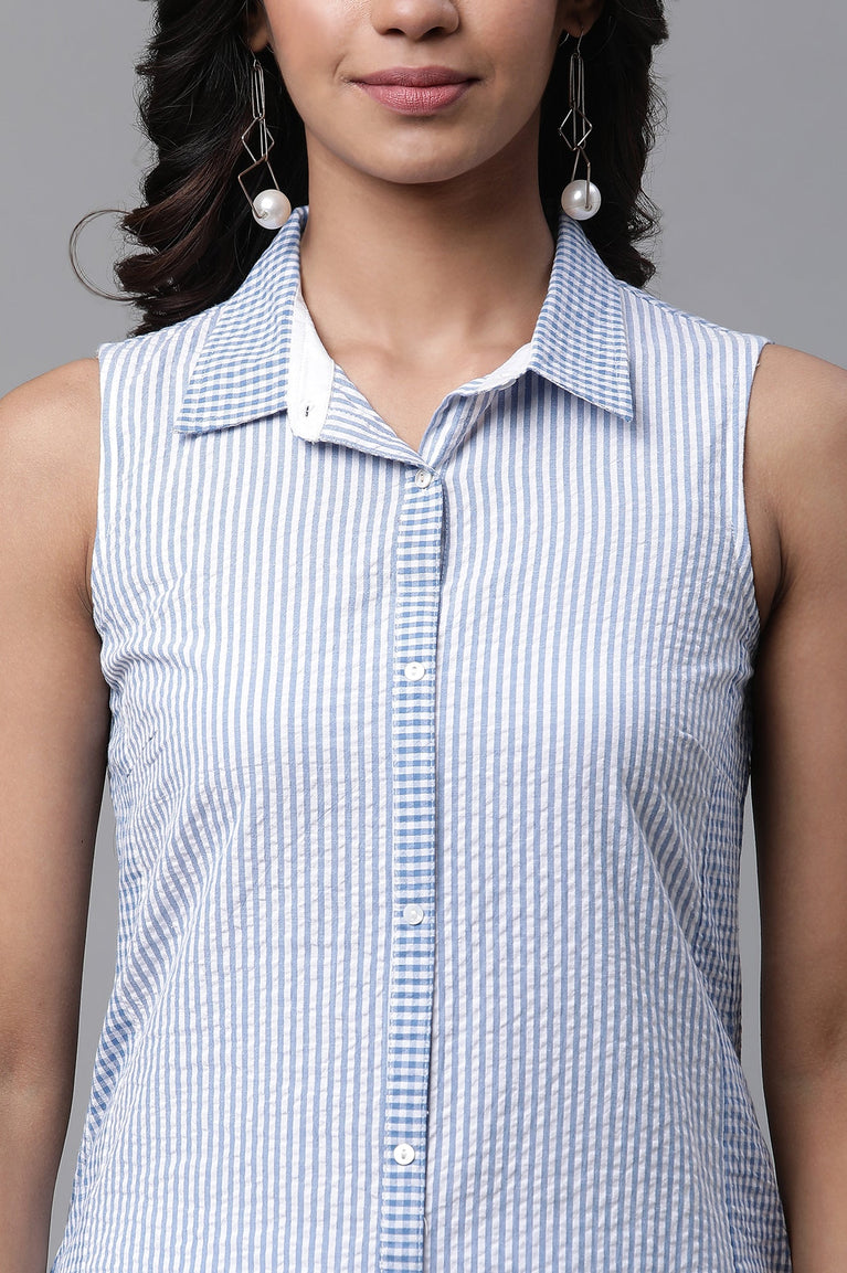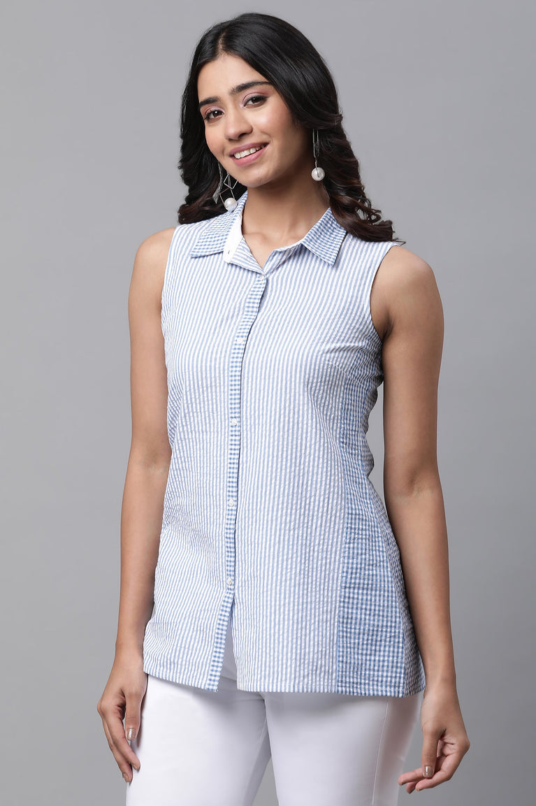 Blue Seer Sucker Striper Short Kurti