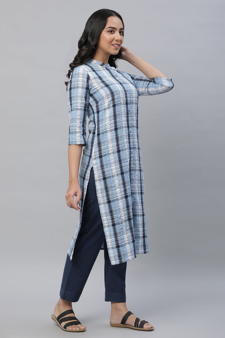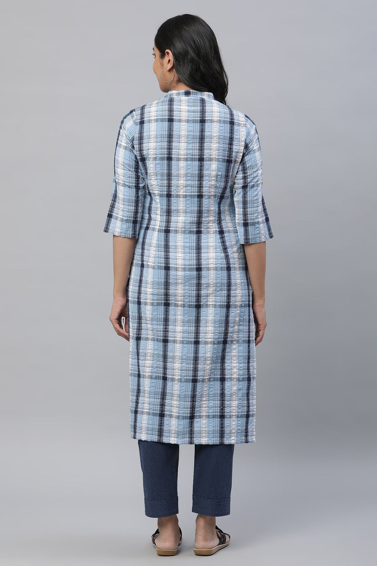 Blue Seer Sucker Checker Straight Kurta
