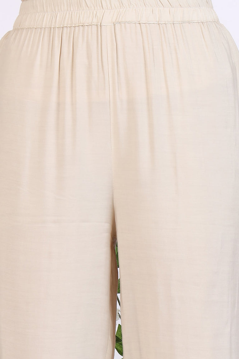 Exude timeless elegance with this cream coloured embroidered kurta and palazzo set. Crafted from soft and breathable yarn-dyed fabric, this ensemble ensures both comfort and sophistication. The straight-cut kurta is adorned with intricate embroidery, adding a refined touch to its classic silhouette. Paired with flowy palazzo pants for effortless grace and movement, the set is completed with a lightweight dupatta that enhances its charm. Perfect for festive gatherings, formal occasions, or casual outings, this versatile outfit can be styled with statement jewelry and ethnic footwear for a polished, elegant look.