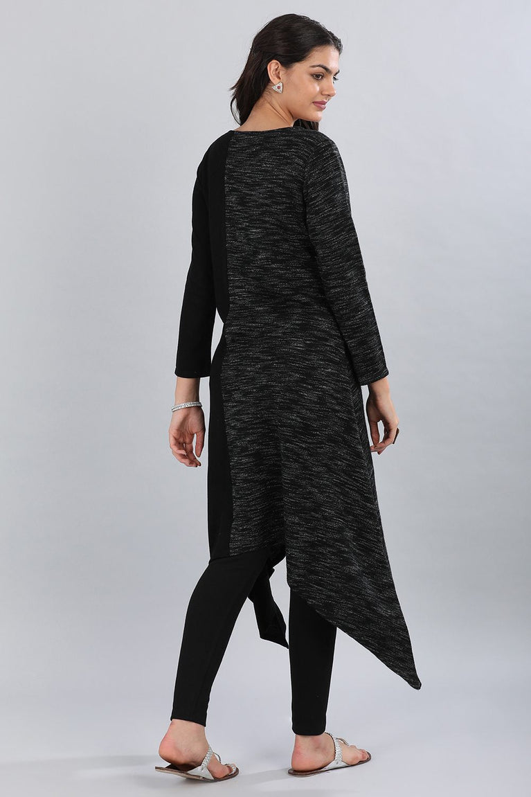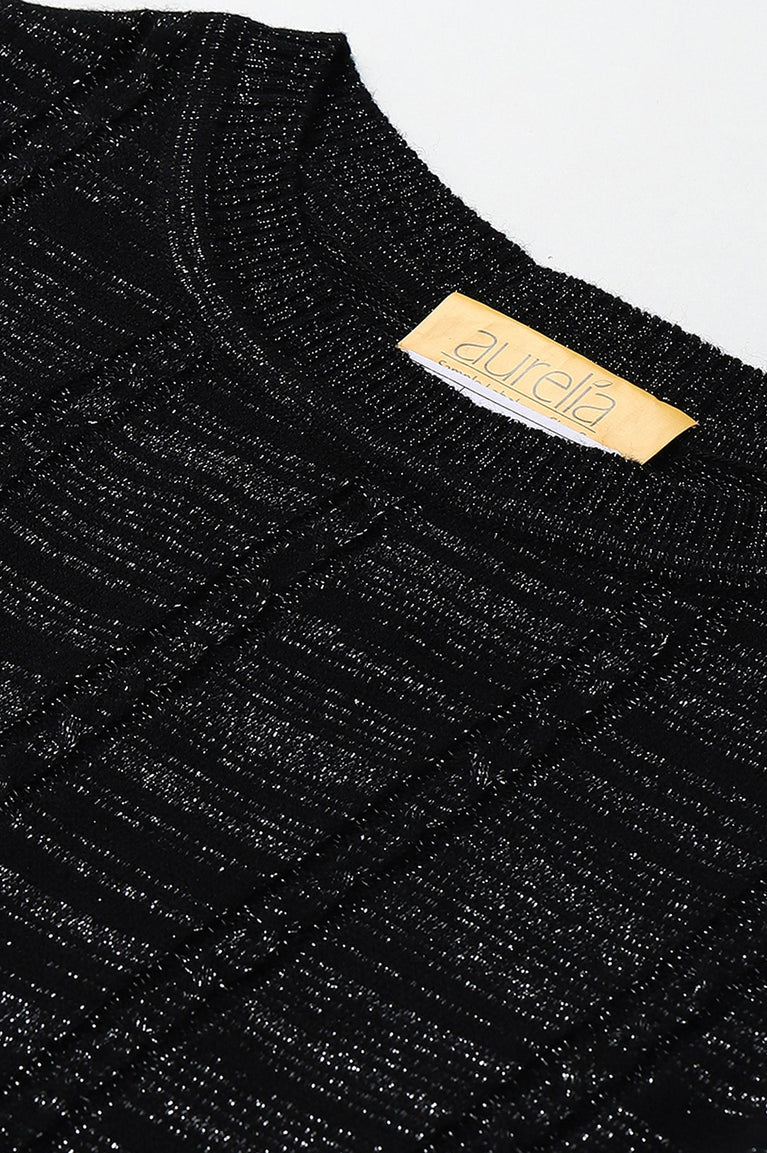 Black Lurex Knitted Winter kurta