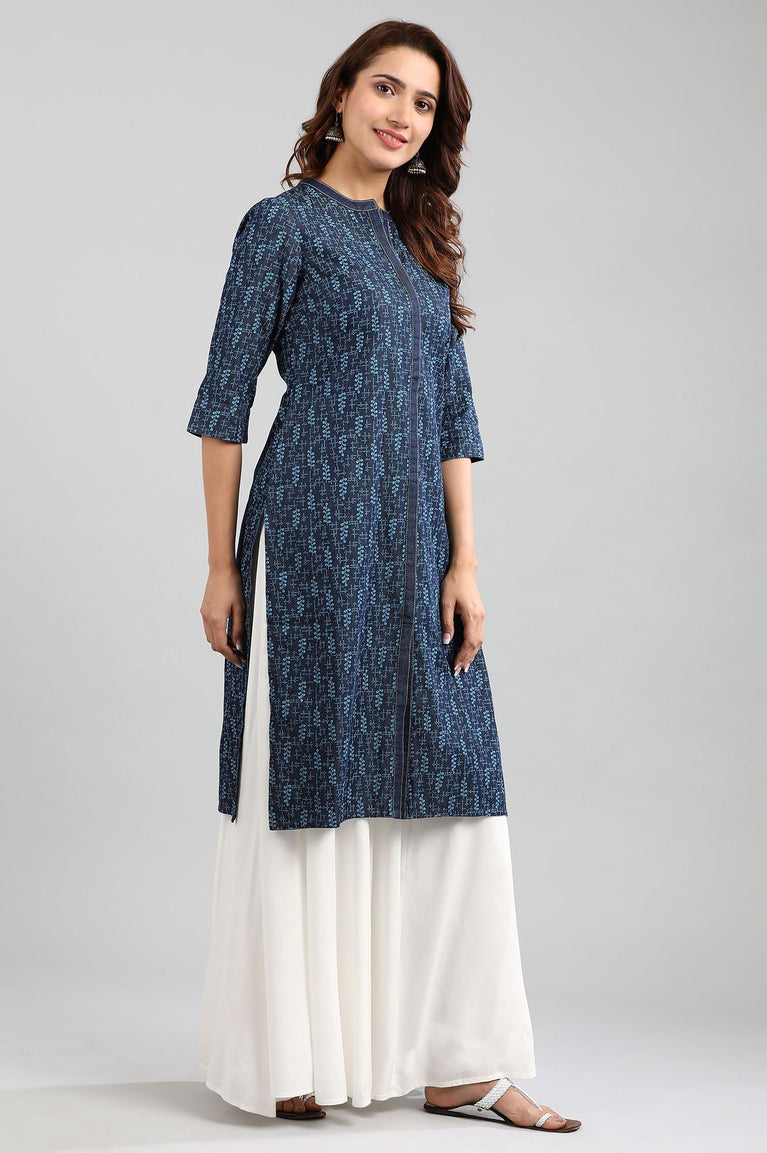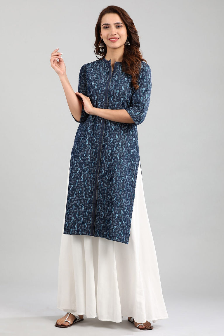 Blue Mandarin Neck Printed kurta