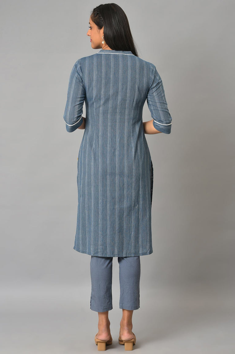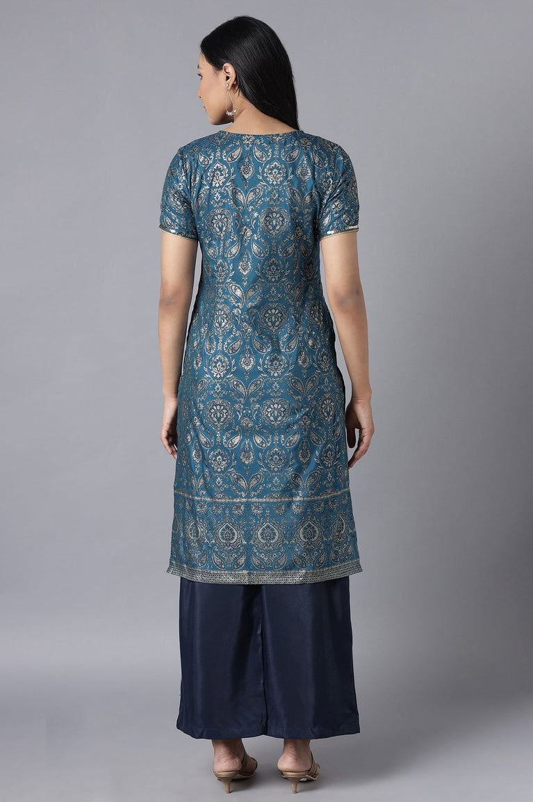 Blue kurta- Straight Palazzo Set
