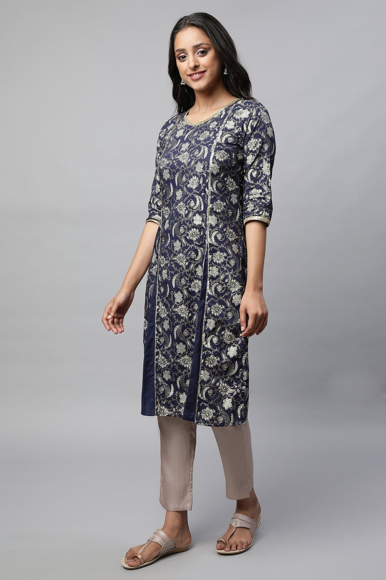 Blue Floral Printed Straight Kurta