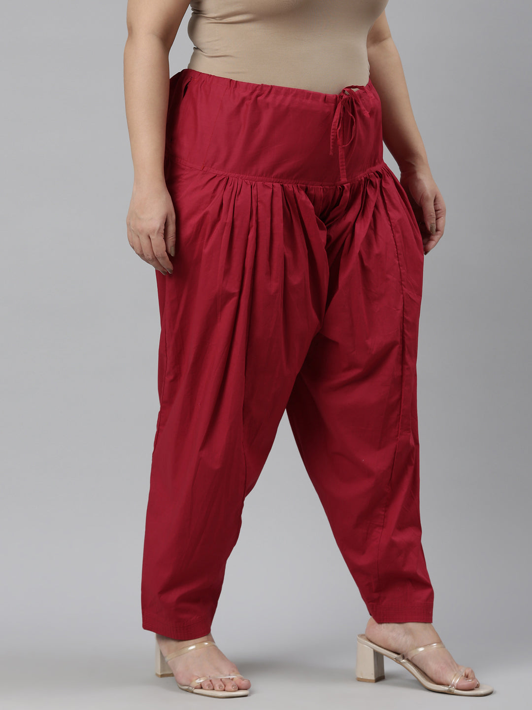 Spruce up a look or spend the day comfortably in the Cherry Cotton Salwar. It has a drawstring pull-up closure, front pleats with a regular fit. Can pair it with a tunic or any kurti for a fun everyday look.