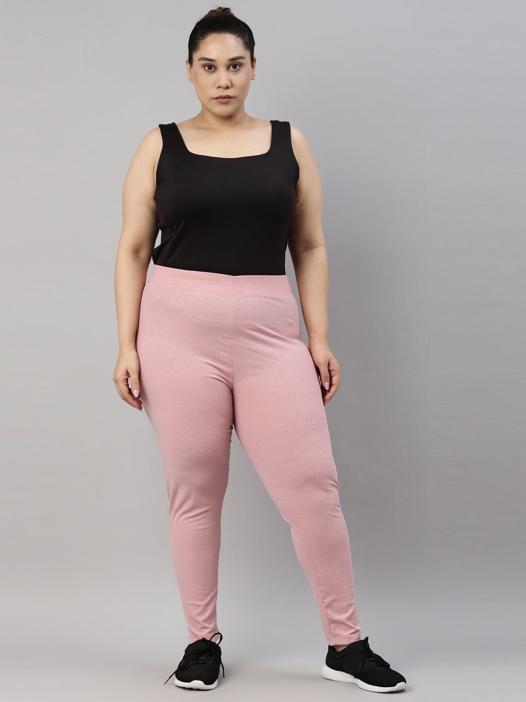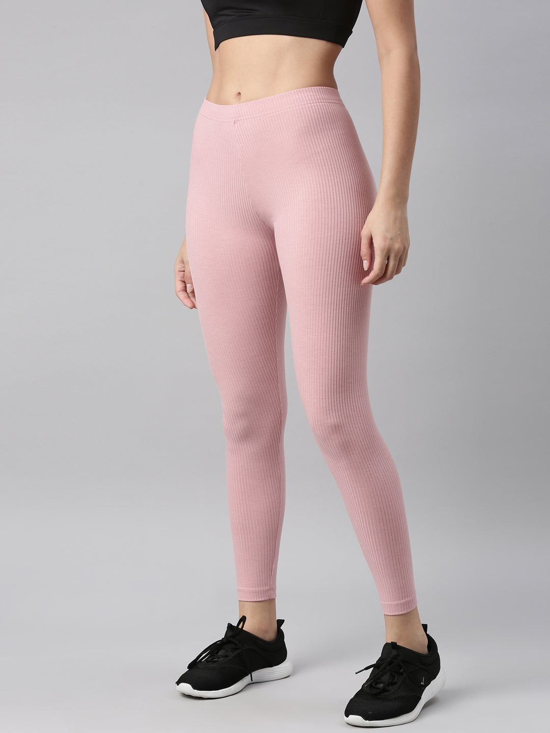 Go the ethnic way with our Solid Light Pink Ribbed Leggings. Made from Rayon & Spandex it has a elasticised waistband, slim fit & is of ankle length