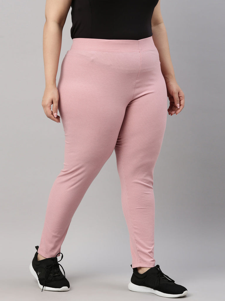 Go the ethnic way with our Solid Light Pink Ribbed Leggings. Made from Rayon & Spandex it has a elasticised waistband, slim fit & is of ankle length