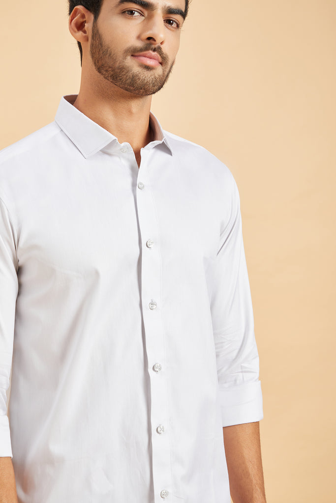 White long-sleeved shirt with Black coloured V-shaped pattern is a perfect blend of Comfort and Style. It can be worn on formal occasions at Parties and Casual outings. It offers all-day Comfort with pure and Breathable Cotton.