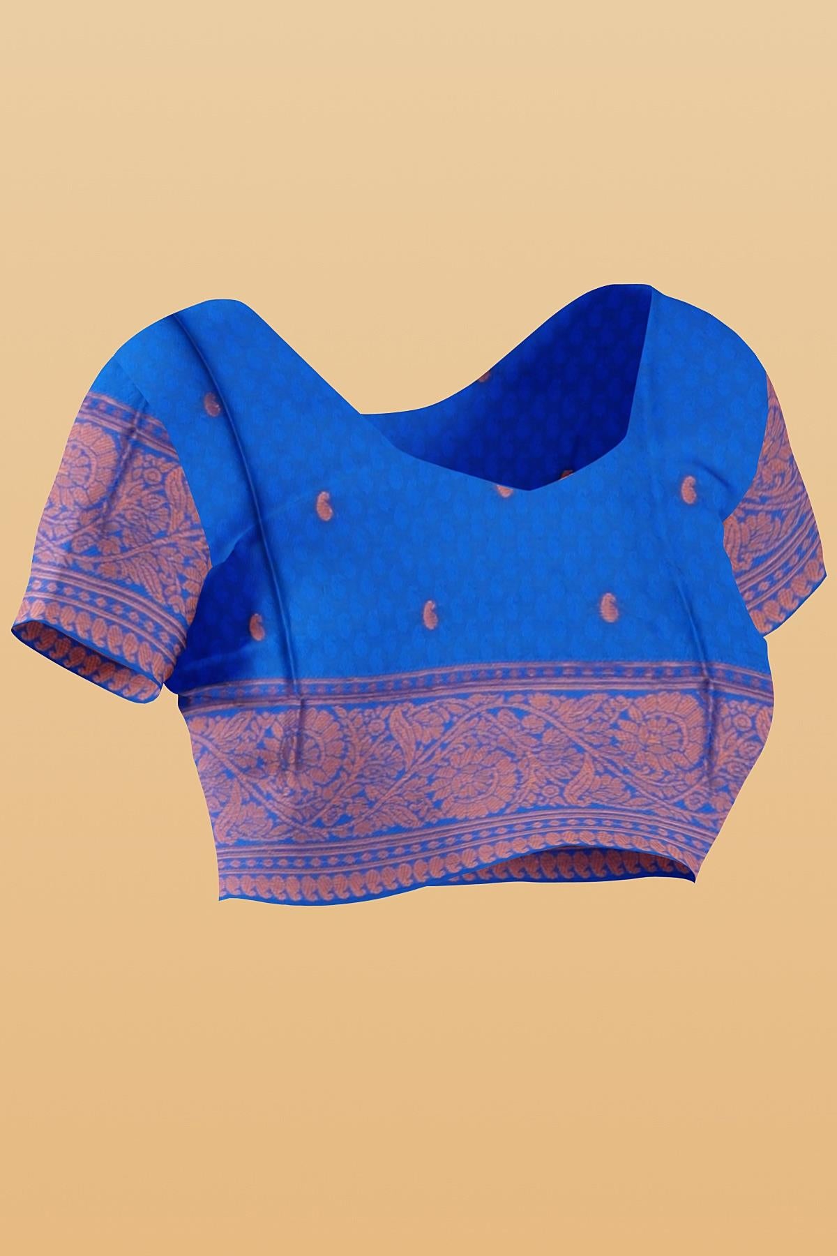 LIGHT BLUE and ROYAL BLUE FLORALS SILK Saree with FANCY