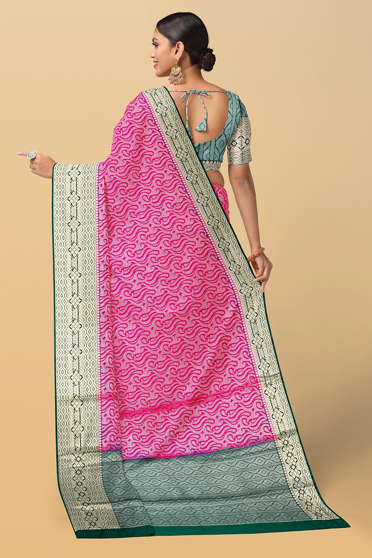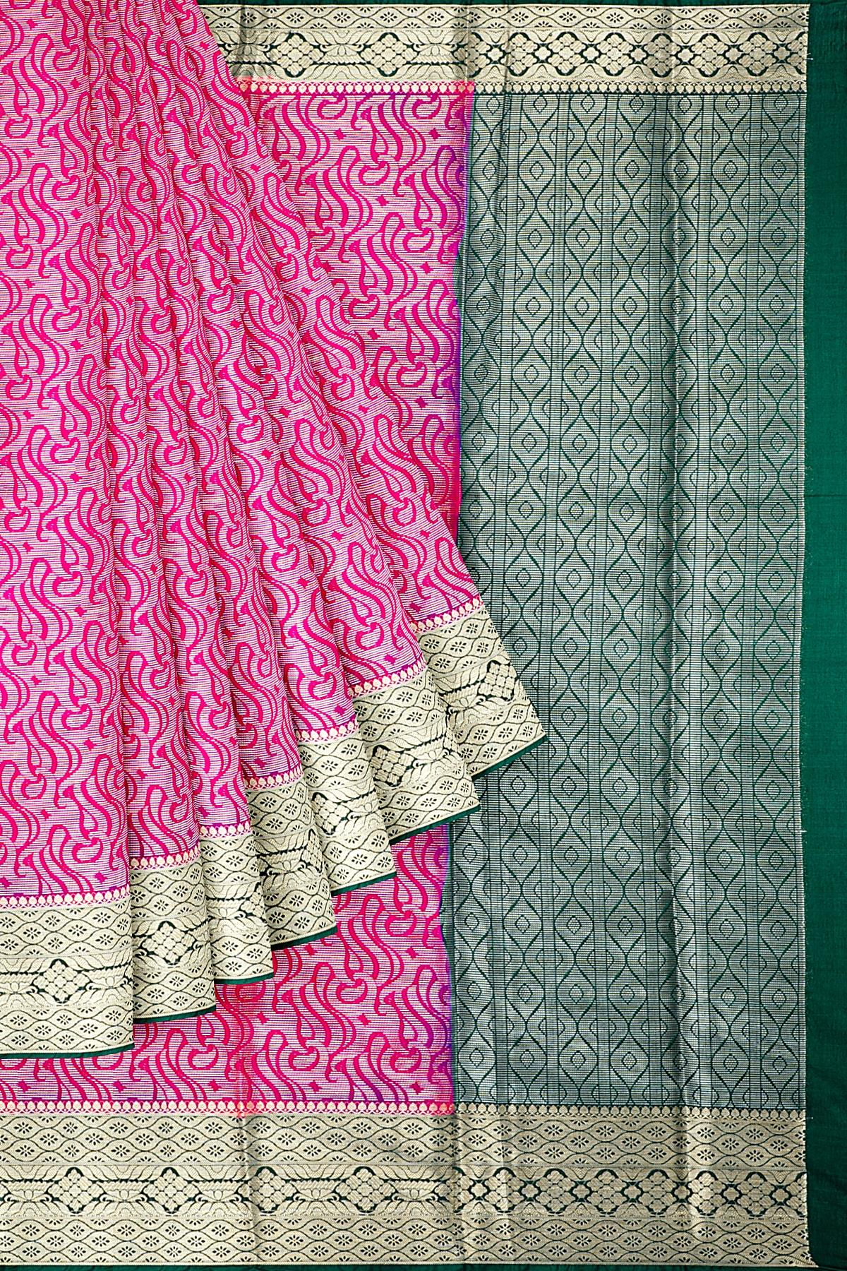 MAGENTA and DARK GREEN BROCADE JALL KATHAN SILK Saree with BANARASI FANCY