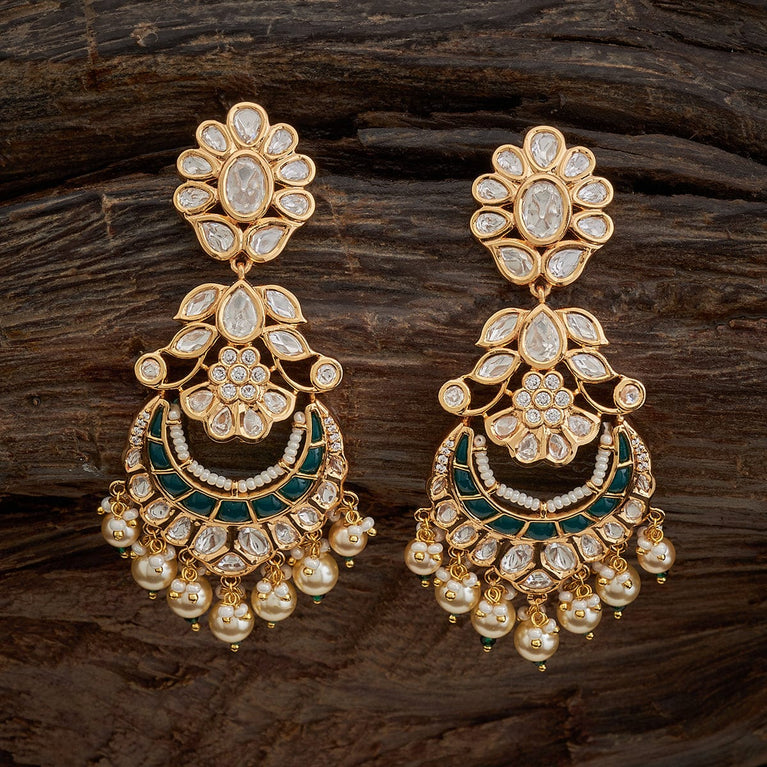 Kushal's Fashion Jewellery Flower Motif Kundan EarringKundan earrings are one of the best accessories to wear with a traditional outfit, and with matching accessories, you can also wear them with fancy outfits. Keeping this in mind, we present our latest pair of Kundan earrings for your accessory collection. All you have to do is wear them with your favorite outfit to be the trendsetter.