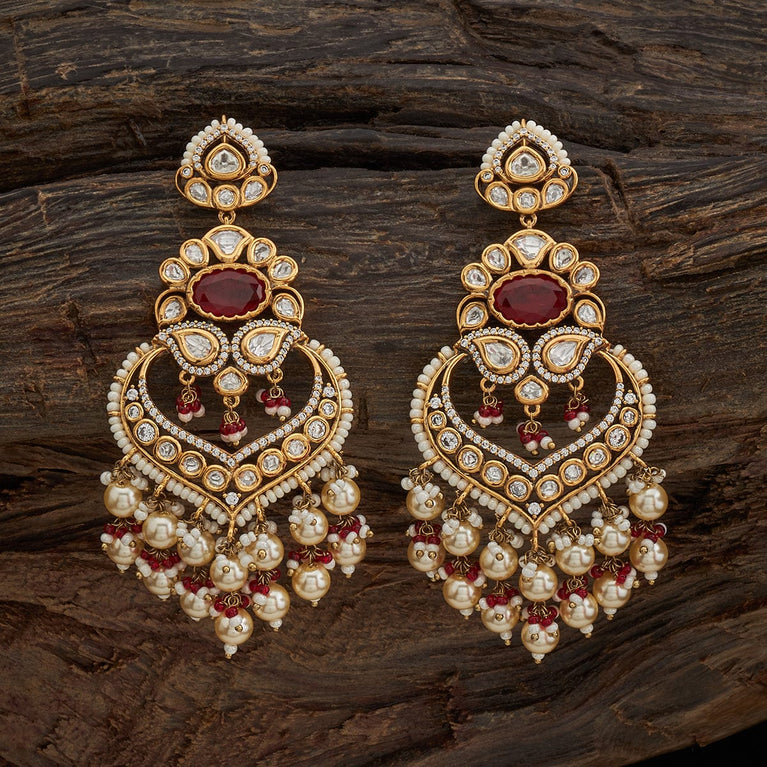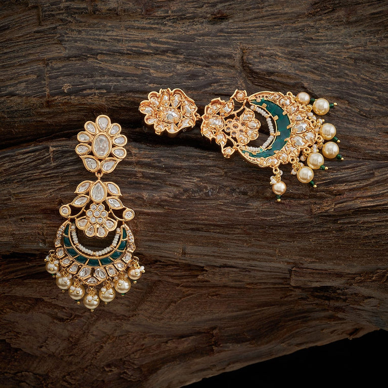 Kushal's Fashion Jewellery Paisley Design Kundan EarringAll types of polishes look splendid on Kundan stones, but Victorian polish gives it the finest look and our latest pair of Kundan earrings are here to give you that look. The Victorian polish on the Kundan stones paired with the green and ruby stones makes these hanging earrings one of the best accessories you can get this wedding season.