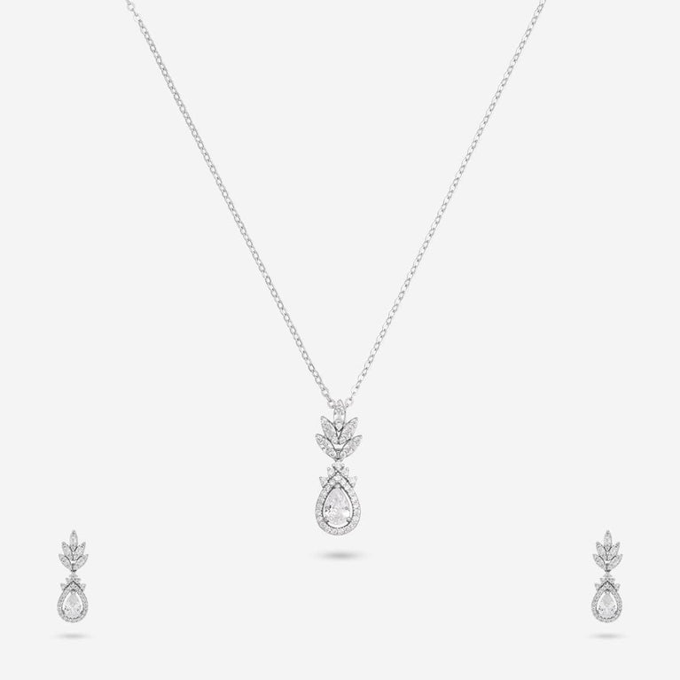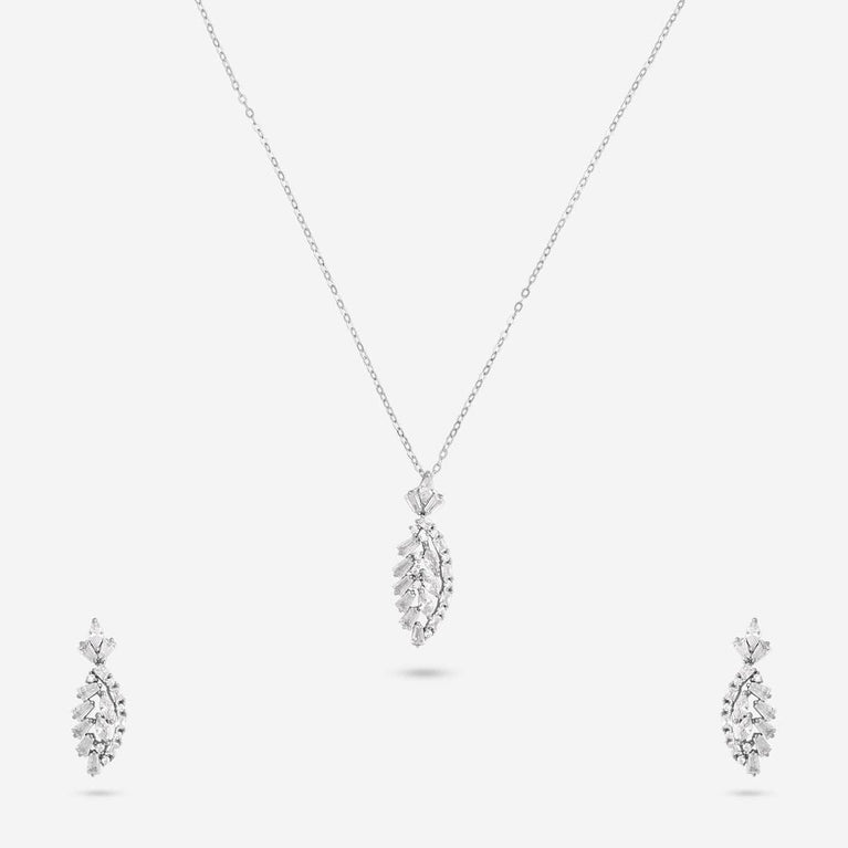 92.5 Silver Pendant With Chain and Earring Set 191360