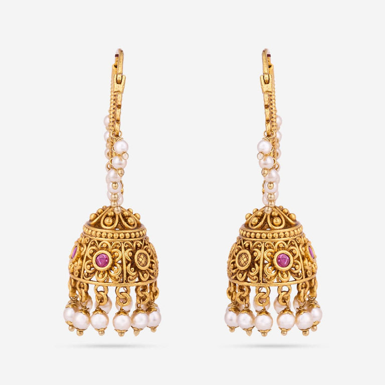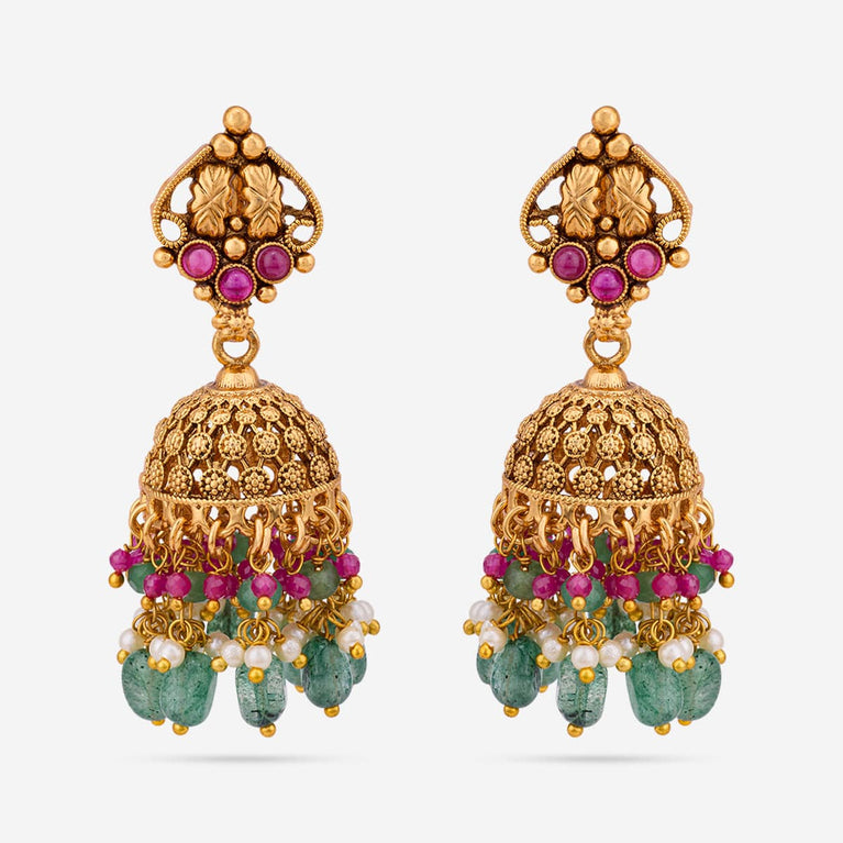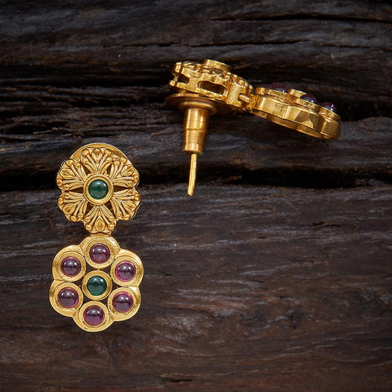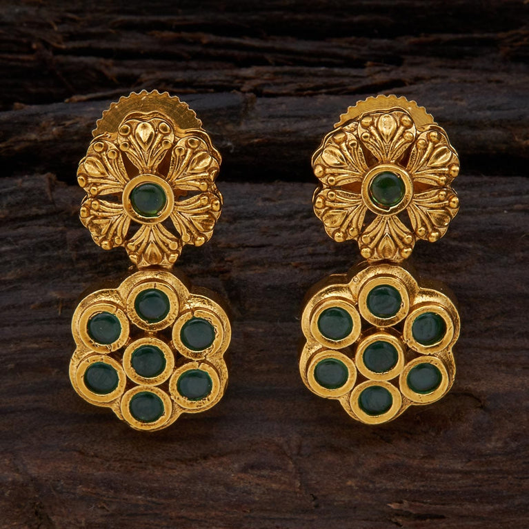 Flower Motif Antique EarringRock a chic vibe with these antique earrings, crafted from copper alloy with a golden polish. Studded with green or ruby stones in a trendy floral design, they're the ultimate statement-making jewellery. These perfect push-back earrings are ideal for any occasion, seamlessly blending with your fusion outfits for that Gen Z flair.