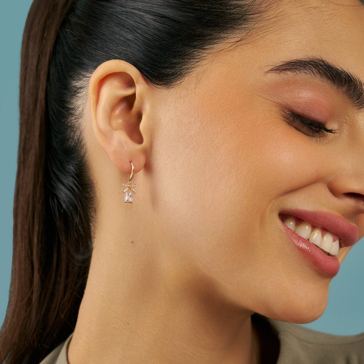 Slay all day and elevate your earring game with these stunning 92.5 silver earrings from Kushal's Fashion Jewellery. Featuring white zircons, you can choose your vibe with gold, rhodium, or rose gold polishes. Lightweight, with a secure fish hook closure, these hangings are your new go-to for effortless style.