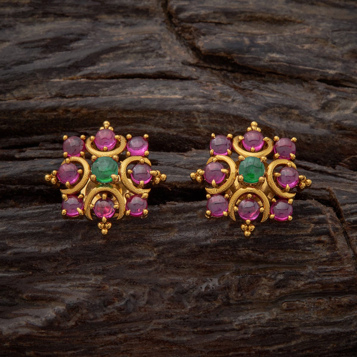 Enjoy the elegance of Kushal's Ruby and green Antique Earrings. These earrings, which combine sanguine and pastel colors, are a tribute to ageless elegance and are the talk of the town. They are ideal for any occasion and are great presents for your loved ones. These delicate accessories will enhance your ethnic clothing.