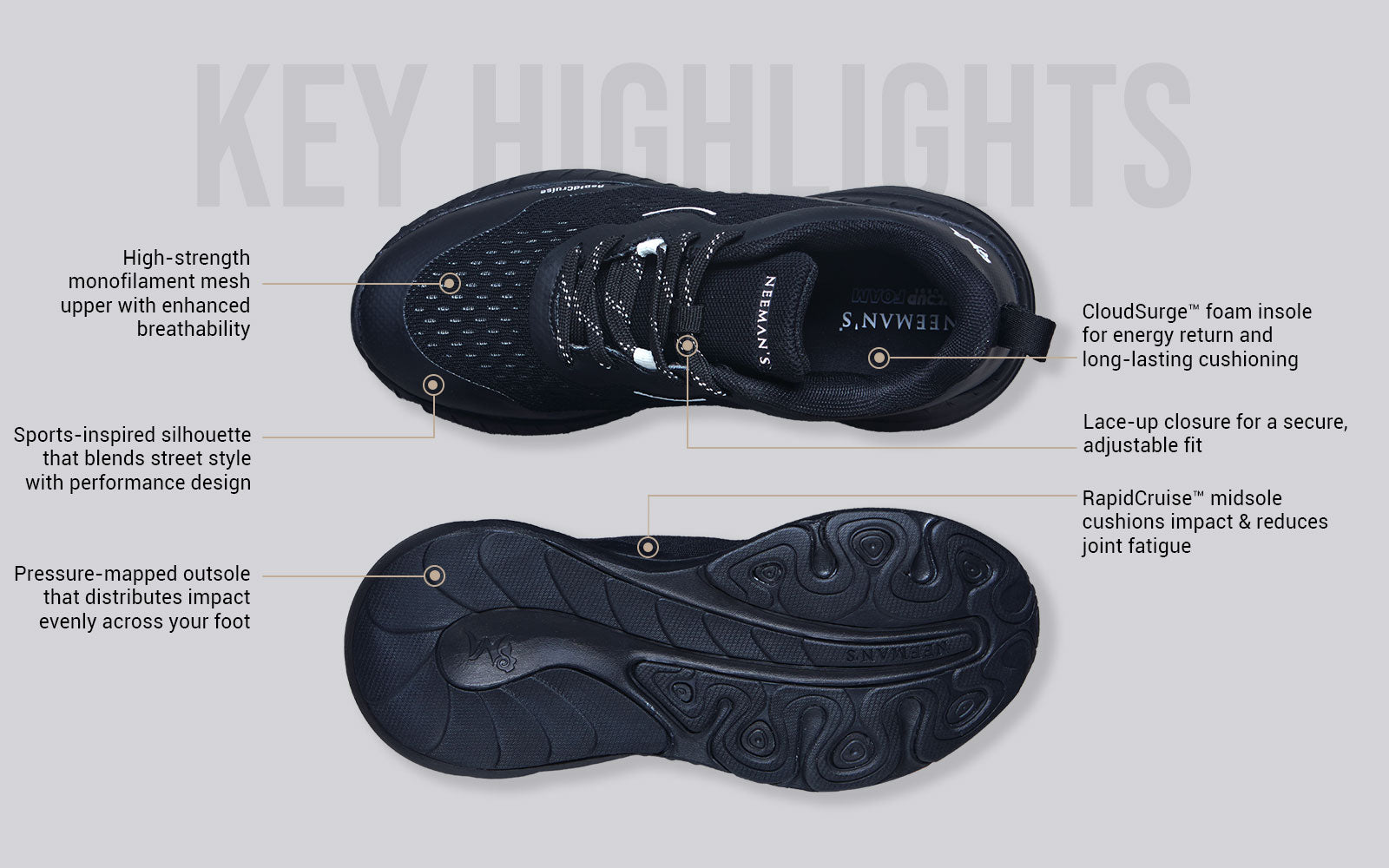 Everyday walks just got an upgrade. Begin Walk Drift blends lightweight mesh, RapidCruise™ cushioning, and a bold, grippy sole to give your steps a boost of ease and energy. Weave through crowds, pace through meetings, or end your long days with a walk—this light & steady solemate loves to keep moving!
