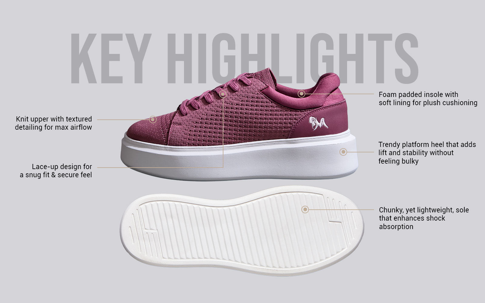 Chunky shoes are having their main character moment - and these lace-up’s totally understood the assignment. With a knit upper that feels like a breath of fresh air, a platform heel that gives you just the right lift, and a grippy sole that keeps every step steady, they’re built for strutting, strolling, and all the things in between. Foam-cushioned insole seals the deal - because fashion’s favorite flex should feel as good as it looks.