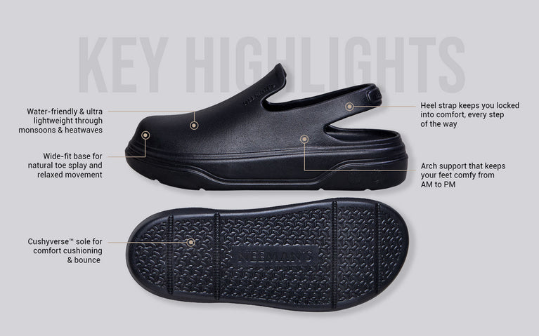Our first-ever Clogs had to be special. Presenting the Cushers - Crafted for your feet's love for cushioning! Â With our uniquely engineered Cushyverseâ„¢ technology, the Cushers Clogs bring bounce, support, and comfort extending from mid-foot to heels to your sole.