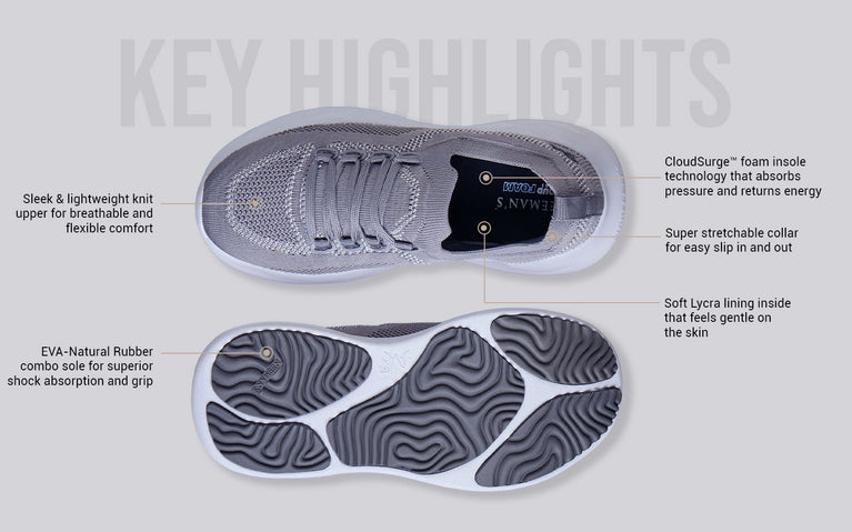 Walking should feel rejuvenating and if it isn’t, that means you’ve got shoes that don’t feel like a hug. Enter Begin Walk Leap, a walking shoe designed to cushion, stretch, absorb pressure and breathe with every step you take. A proper walking shoe, made for movement!