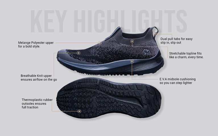 Still snoozing your morning alarms? Dragging yourself to walks like it’s an early morning meeting? It’s not you; it’s your shoes. Meet the Begin Walk ‘Breeze’. With a breathable knit upper, energy-returning insole, responsive cushioning & compression midsole, and a pressure-mapped outsole, these shoes offer you the most comfortable walking experience, all while managing the stiffness and stress on your joints & muscles.