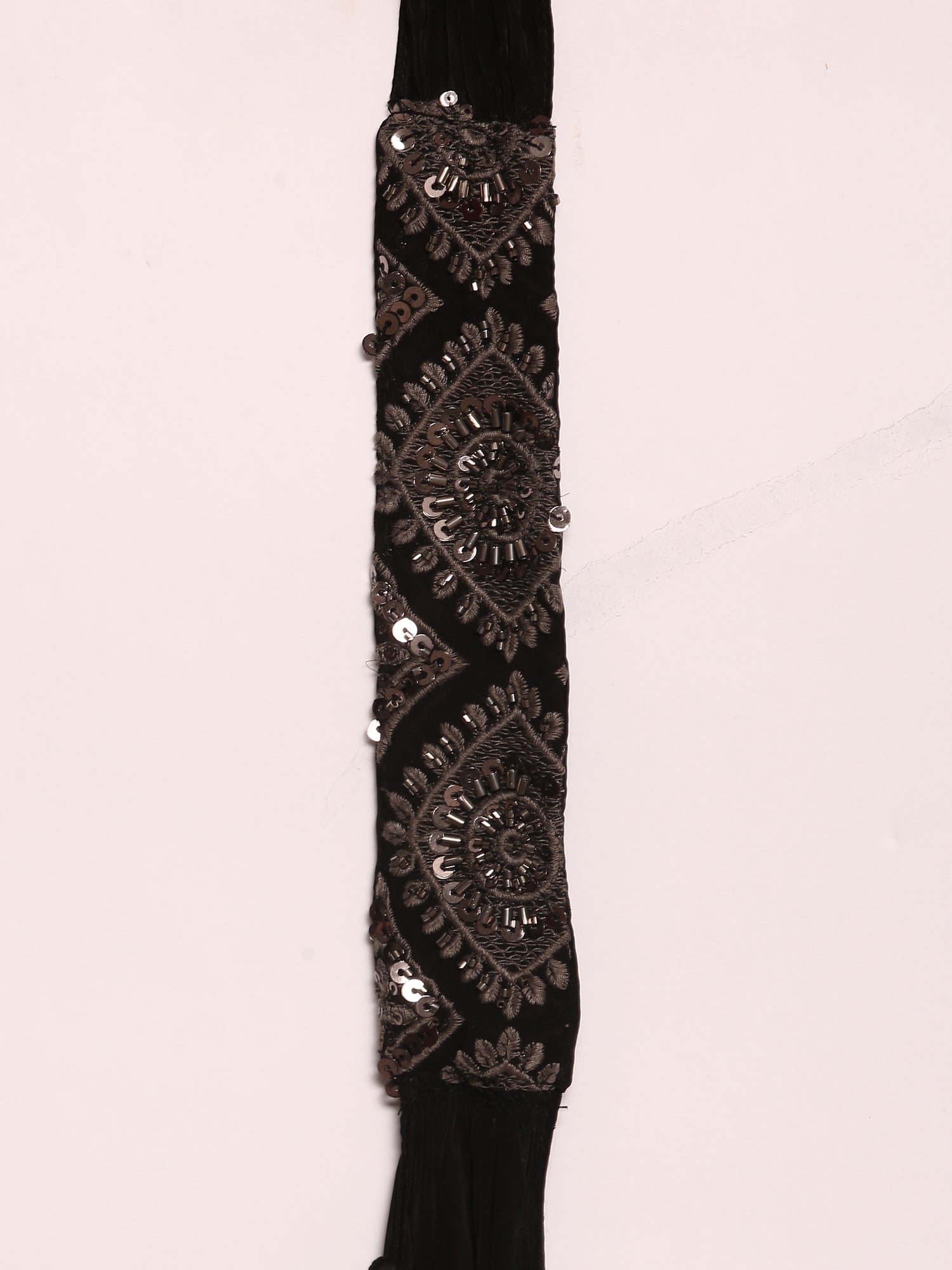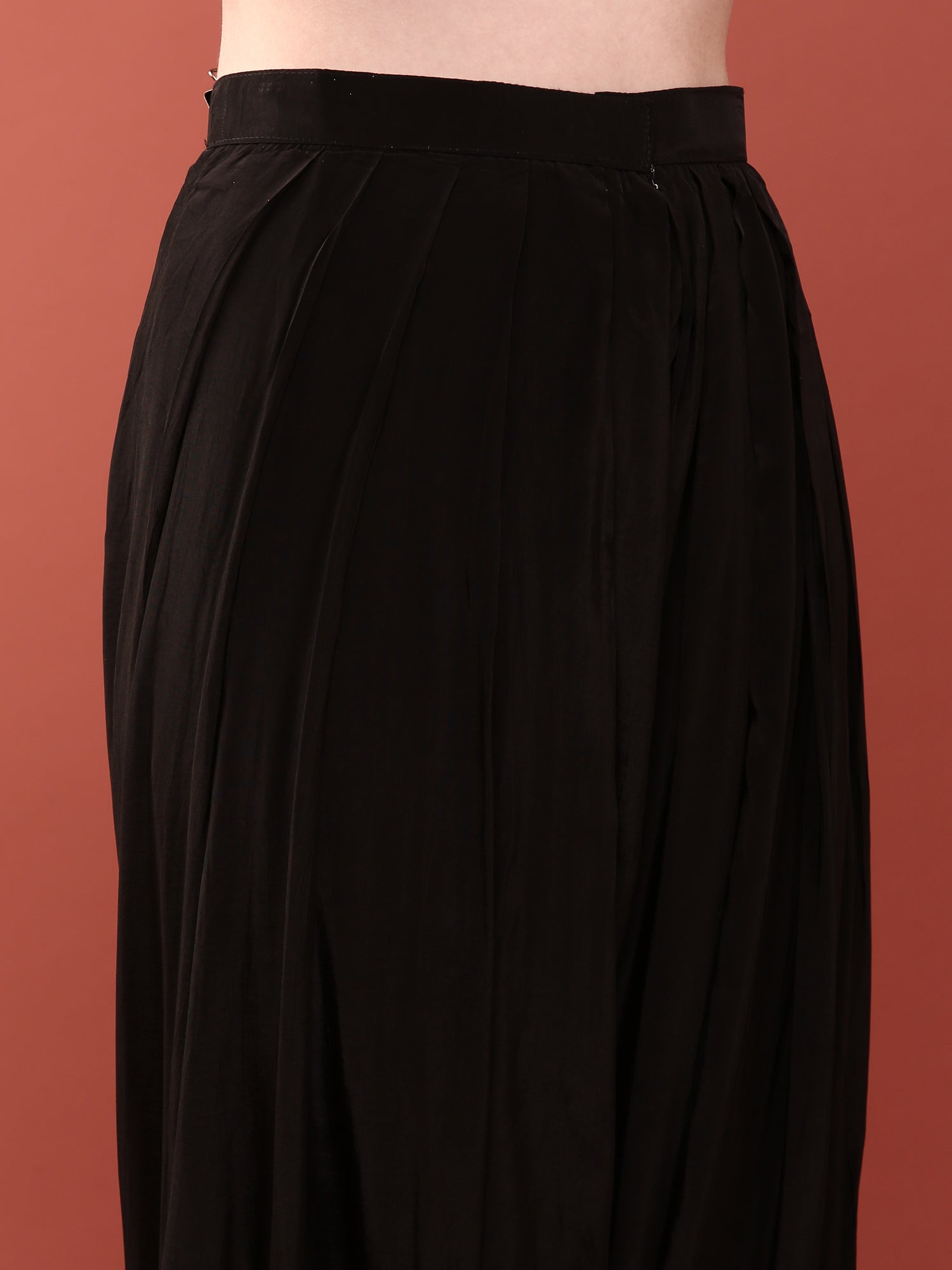 Black Crepe With Heavy Stone Embroidered Top And Dhoti With Dupatta