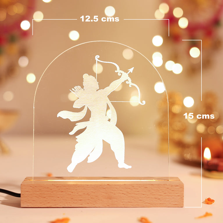 Bring home the divine glow of Shri Ram with this beautifully designed LED Lamp. Featuring an elegant silhouette of Lord Ram with his bow and arrow, the lamp spreads a warm radiance that instantly elevates your festive decor. Perfect for Diwali, Ram Navami, or as a spiritual keepsake, it creates a serene and devotional ambience in any space.
