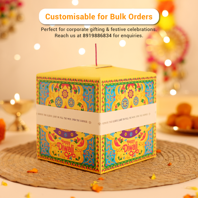 Introducing India’s First DIY Diwali Patakha Box – a festive surprise that looks like a cracker but unfolds into a magical hamper! Celebrate the joy of Diwali with the thrill of lighting something special, without the noise!