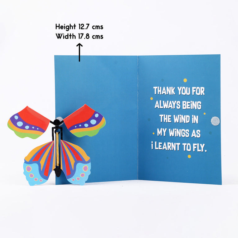 For the dad who’s more giggles than grumbles, this combo is the perfect mix of fun and feels. The Butterfly Card surprises with a flying Crafted butterfly and a heartfelt message inside. Paired with a stylish “Best Dad in the World” Table Top, it’s a gift that makes him smile every single day. Quirky, thoughtful, and adorably unexpected — just like your dad!Specifications:Size of the card – 12 x 17 cmSize of the Table Top - 15 x 15 cm🦋 Butterfly Note:The card has to be opened with a mild jerk for best results. Sometimes, the butterfly tends to get tired during the shipment journey. If possible, we request you to open the card when you receive it and twist the butterfly’s tail the same way you rotate a key to recharge it. Once you’ve completed the motion 40-50 times, place it inside the card and close it.