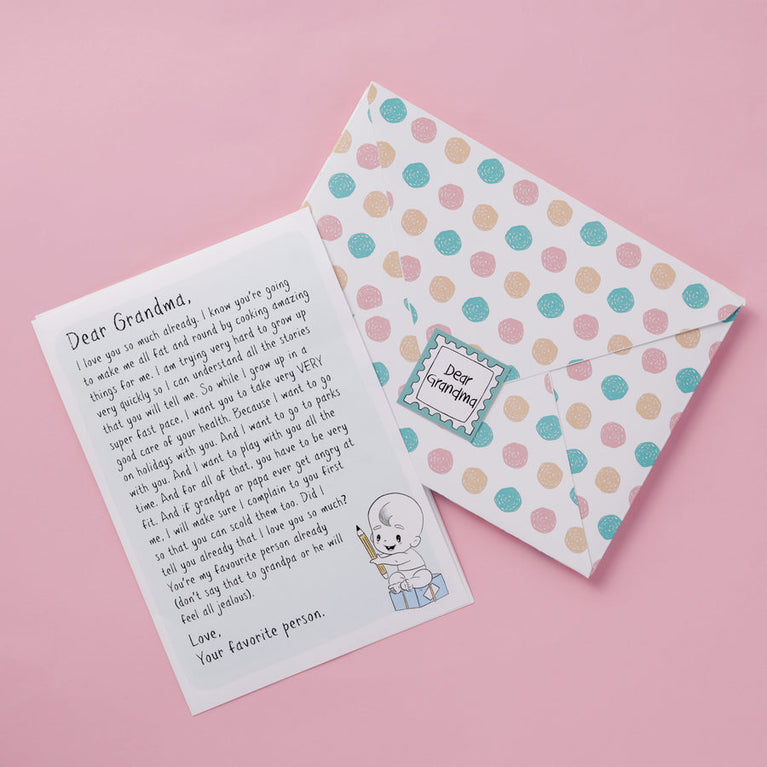 There’s nothing more precious than a letter from a little one—even if they can’t quite write yet! This set of baby letters lets you share sweet messages with all the family members who can’t get enough of your little bundle of joy.