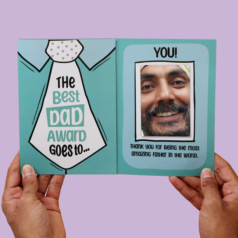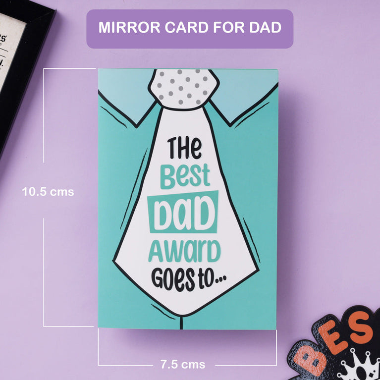 Mini Mirror Card – Here’s a magical greeting card for your amazing dad! This special greeting card is made with premium paper and includes a mirror attached inside so that when your dad opens the card, he sees the real hero being celebrated—himself.