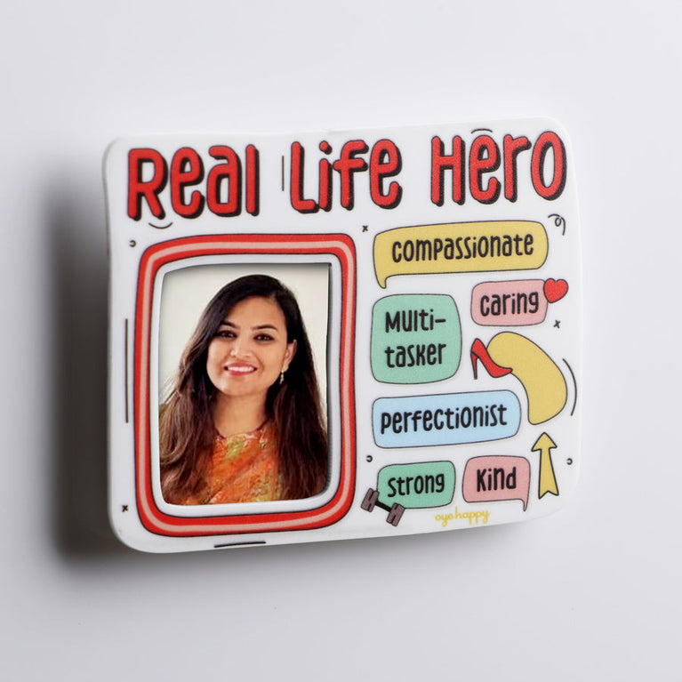 Real-Life Hero Magnet - Whether she is your mom, your sister, your wife, your friend, or just your colleague, we all know a woman who can just do it all. They are like real-life superheroes of our lives. Here's the cutest women's day surprise for her to let her know how often she inspires you and how much you admire her strength. This adorable fridge magnet is customised with 2 of her favourite pictures so that you can change them whenever you like.
