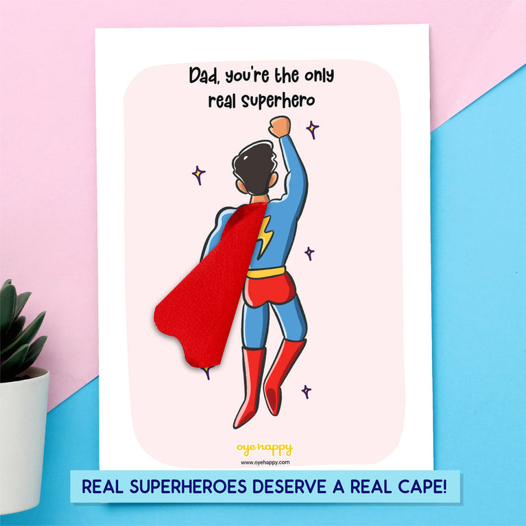 Dads are the real superheroes of our lives. Tell him that with this card which has an adorable little cape attached to it.