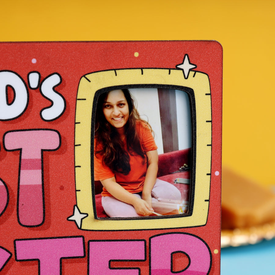 Give your sister a daily reminder of how amazing she is with this customizable tabletop photo frame.