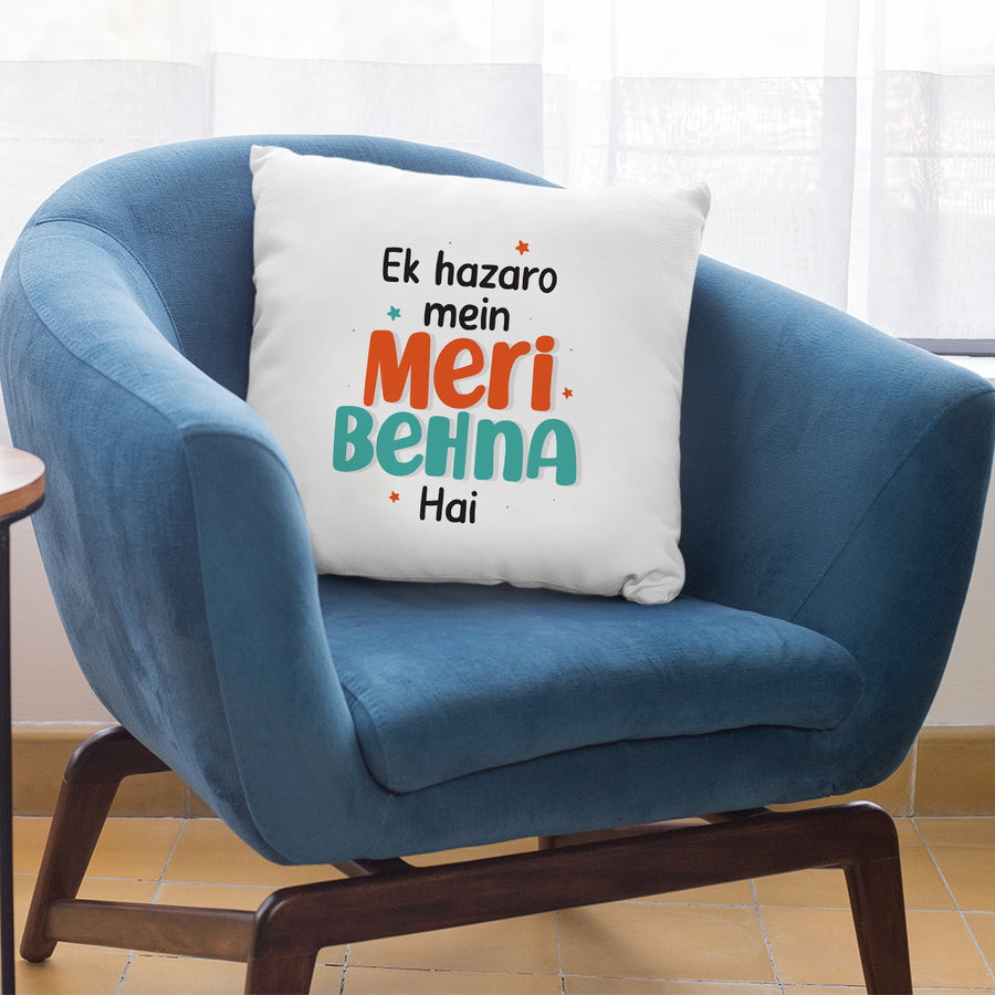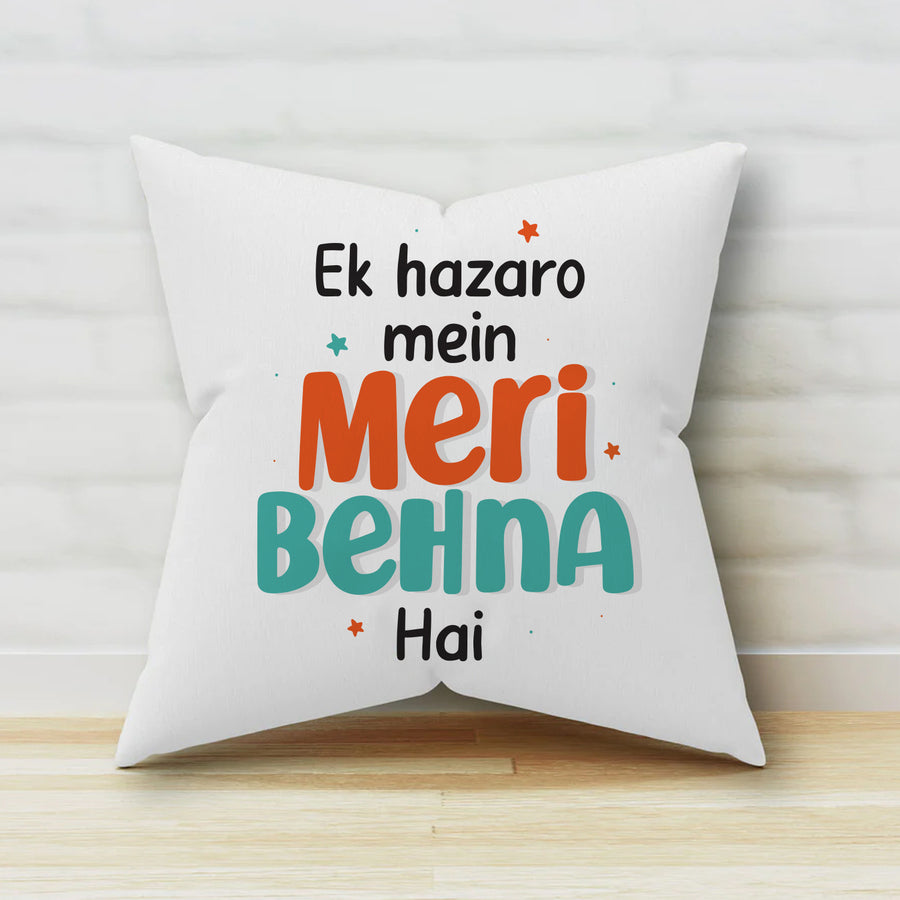 Designed for the Best Sister: With the message “Ek hazaro mein meri behna hai,” this cushion is a sweet token that says it all.